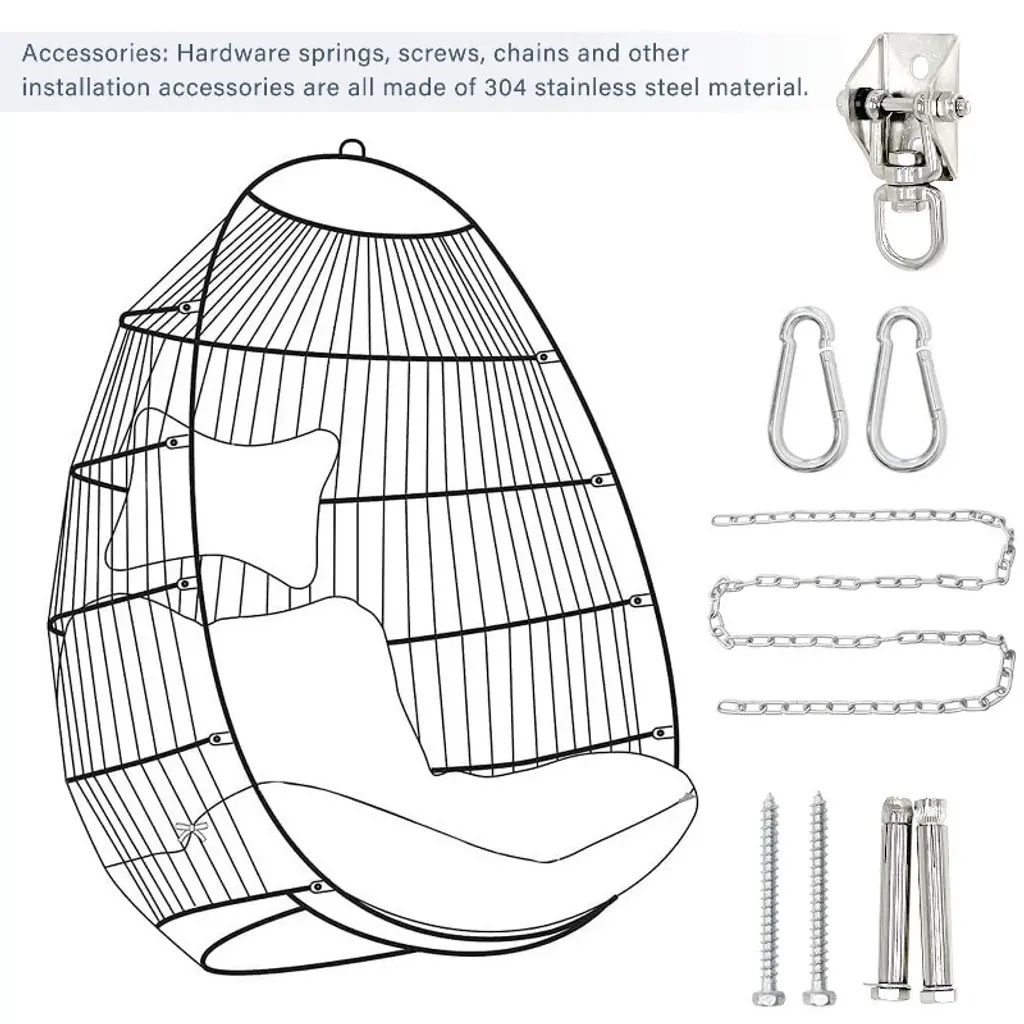 Experience the perfect blend of style and functionality with our Innovative Fold-away Egg Chair. Crafted from weather-resistant polyethylene rattan resin wicker, this chair features a foldable design for easy storage when not in use. The removable polyester cushions and headrest pillow ensure comfort and easy maintenance. With a robust stainless steel suspension kit, it can be securely hung from any concrete ceiling or wooden beam, supporting up to 270 lbs for safety. This chic, cocoon-like chair is ideal for creating a cozy reading nook in your backyard, patio, or garden, allowing you to unwind and relax in style. Its hand-woven frame and finished bottom provide a stunning aesthetic, making it a delightful addition to any outdoor space. Setup is effortless—simply drill a hole in your ceiling or hang it from a tree with the included hooks. Transform your relaxation experience with this stylish and comfortable egg chair!