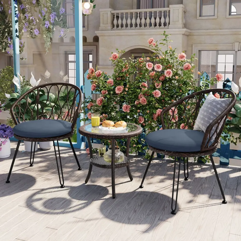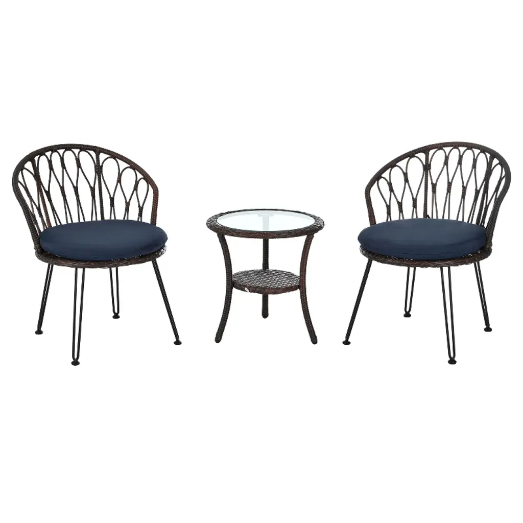Whisen Outdoor Leisure Set, 2 Rattan Single Chairs With A Glass Round Table, Perfectly Suited - Blue