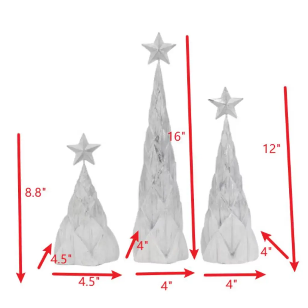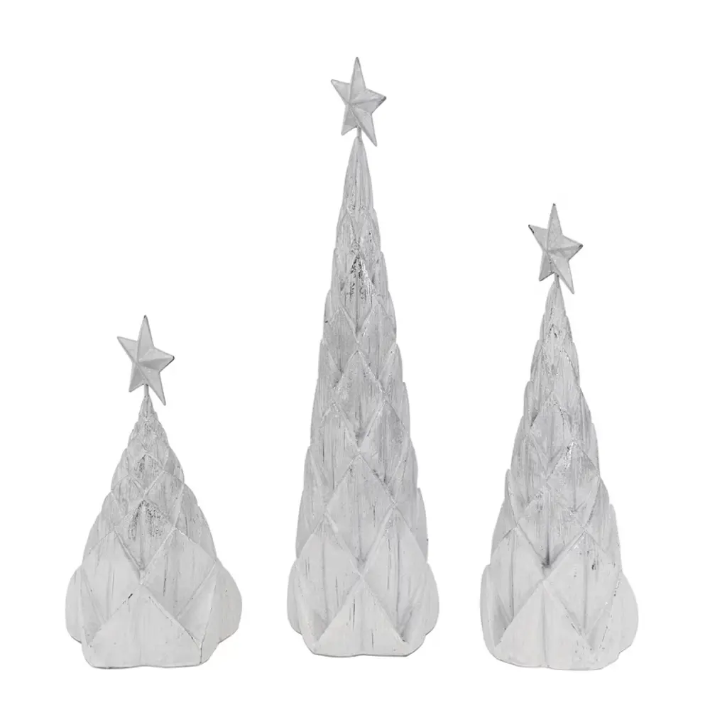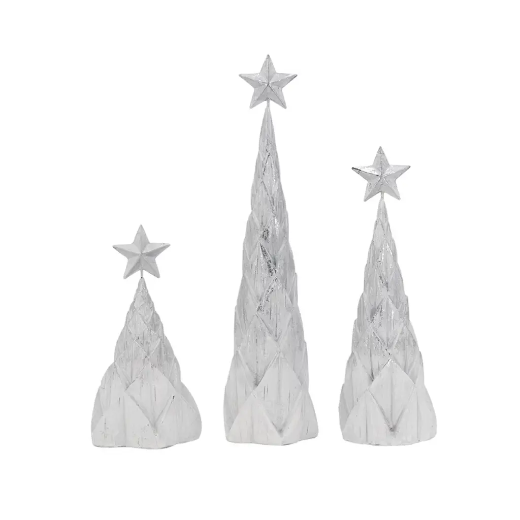 Whisen Set Of 3 Resin Foil Christmas Tree With Star Top - White & Silver
