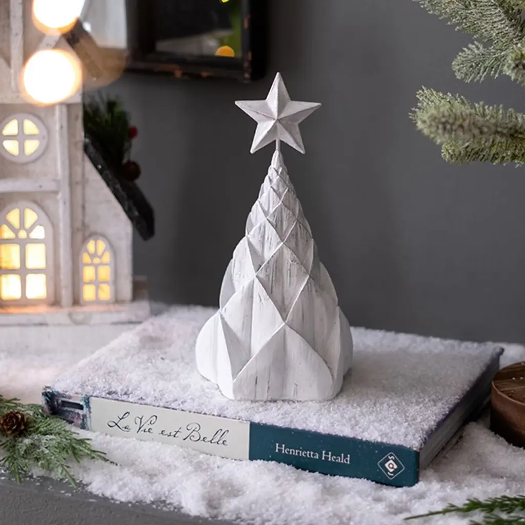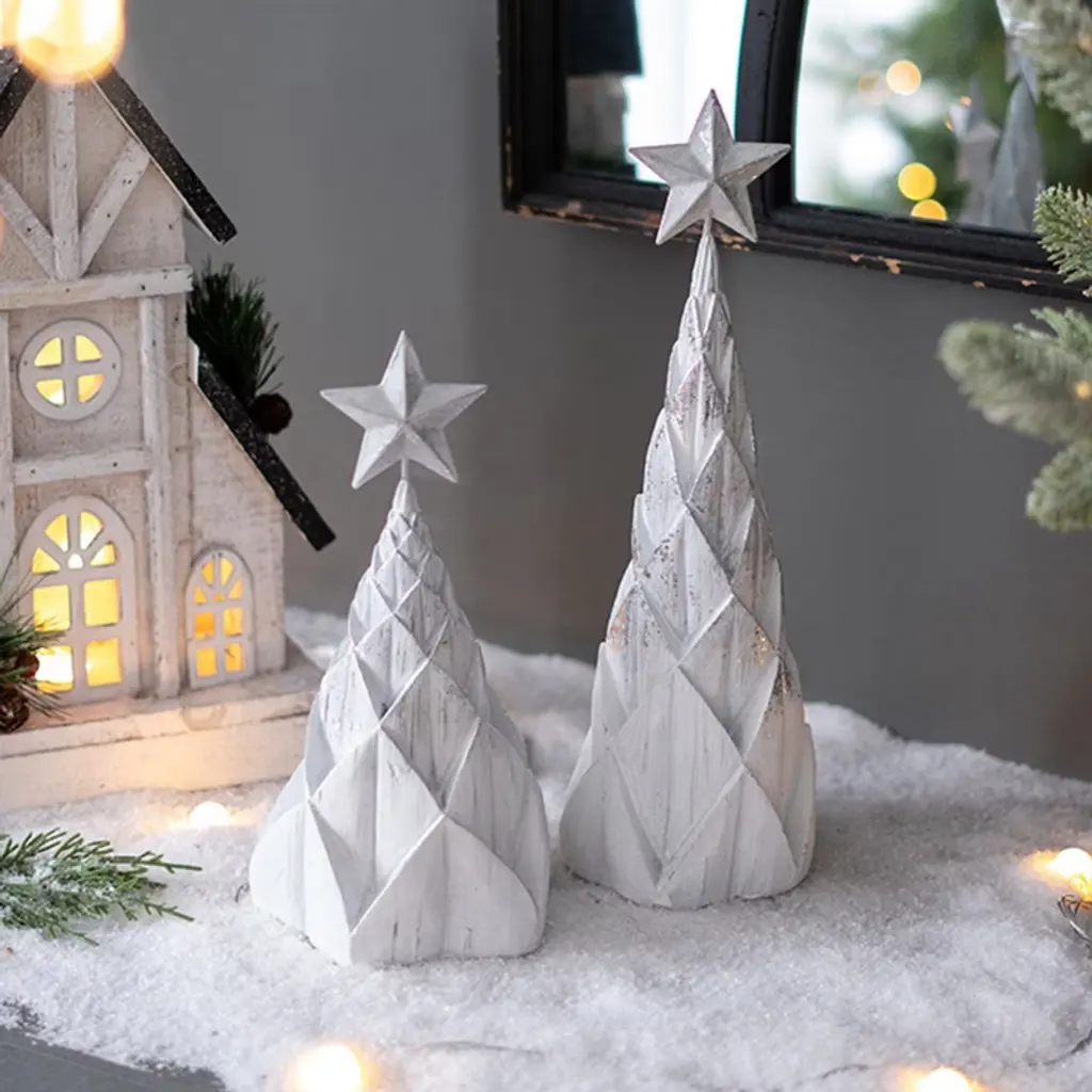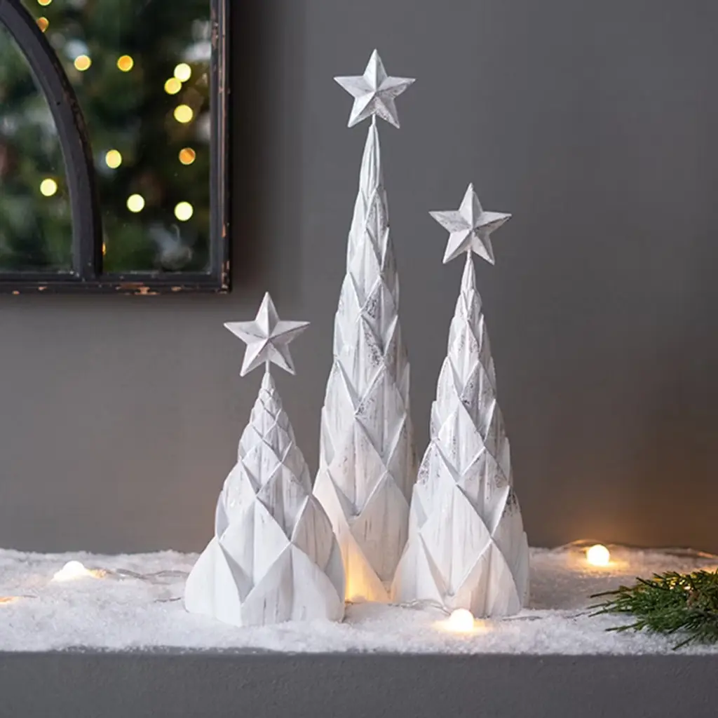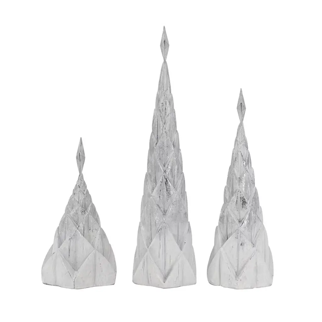 Whisen Set Of 3 Resin Foil Christmas Tree With Star Top - White & Silver
