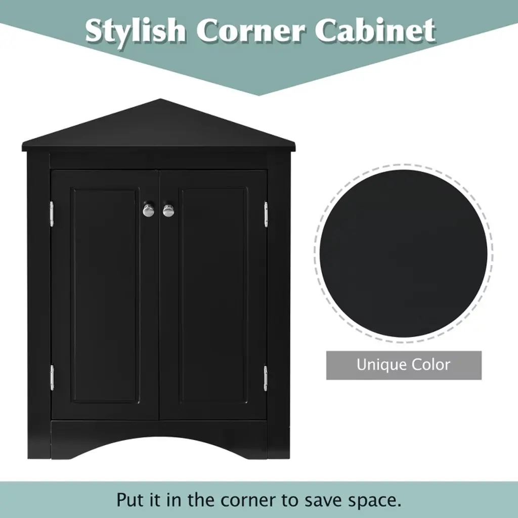 Whisen Triangle Bathroom Storage Cabinet Corner Cabinet With Adjustable Shelves - Black