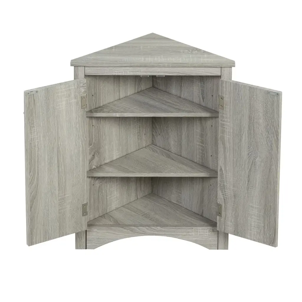 Whisen Triangle Bathroom Storage Cabinet Corner Cabinet With Adjustable Shelves - Oak