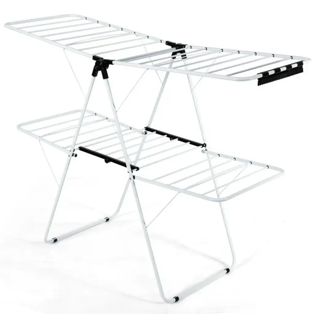 White 2 Level Foldable Clothes Drying Rack Adjustable Height - 60.5"l X 44-54.5"w X 54.5"h - White