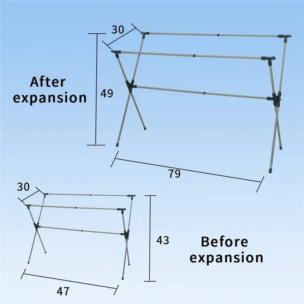 Description Make drying your laundry a breeze with this White 2 Level Fold-able Clothes Drying Rack Adjustable Height. Made of powder-coated steel pipe, this rack is durable and weather-resistant, which is suitable for both indoor and outdoor use. This drying rack comes fully assembled, which is ready to use straight out of the box. You can use 33 drying poles with 26 sock clips to hang clothes. After using, you can fold it into a compact size (45 inches x 3.5 inches x 22 inches) and store it in any narrow space according to your needs. Specification:-
