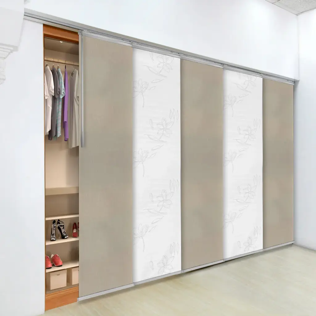 Central Design is pleased to announce the newly designed Panel Track, easily used as 2-way Vertical Blinds or Room Divider. Distinguished winner of the "2020 Good Design Award and 2021 MUSE Design Awards". Total Width is adjustable from 58-110". Individual Panel Size: 91.5" Height x 23.5" Wide. Overall Height including rail track is 94". The height of the Panel is adjustable by simply trimming the Panel and re-attaching the Liner and Panel Weight (Instructions provided). Wall or Ceiling mountable for versatility in its set up. Clearance (wall to the the back of Panel Track): extendable from 1.25"-3.25". Projection (wall to the furthest point): extendable from 3"-4.25". Single Rail Patented design; 1.25" thick for a very slick, thin, and compact design. No more bulky rail set ups. Made of steel for a durable and smooth operation of the Panels. Different from your standard panel track in that the sliders are designed in a more compact, overlapping fashion to reduce light bleed coming from in between the Panels. Track Material: steel. Panel Material: Polyester.More Panel Track sizes available & sold separately; 3-panel, 4-panel, 5-panel, 6-panel
