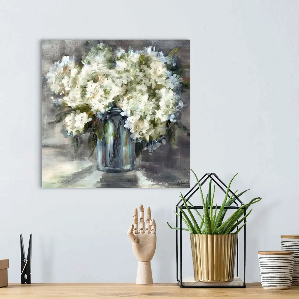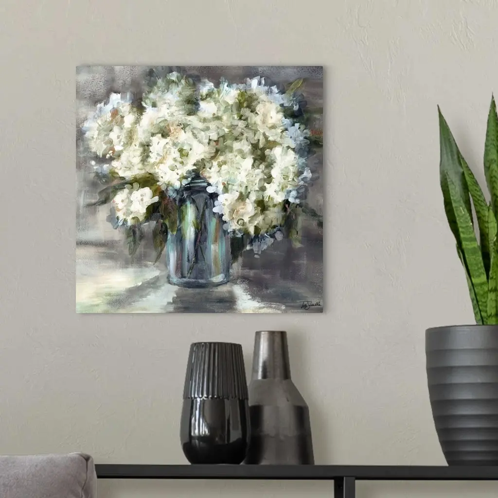White and Taupe Hydrangeas Sill Life wall art for home and office decor. Discover canvas art prints, photos, mural, big canvas art and framed wall art in GreatBigCanvas.com's varied collections.