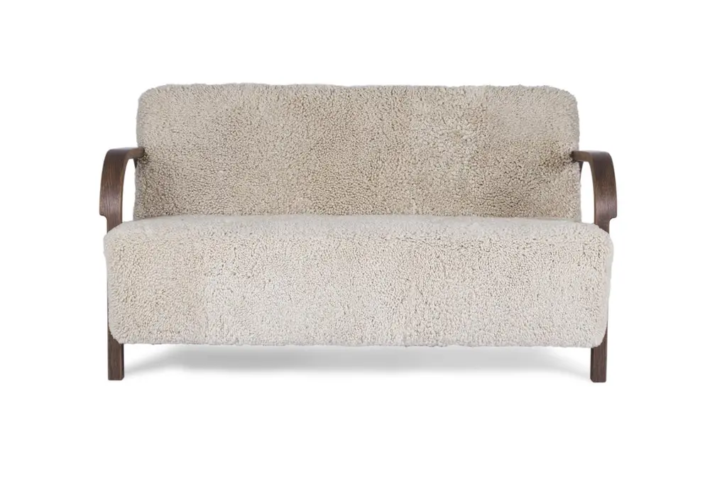 White ARCH 2 Seater Sofa in Oak and Moonlight Sheepskin by Mazo DesignDimensions: W 128 x D 79 x H 76 cmMaterials: Oak, SheepskinAlso Available: 2 Seater Configuration, ROMO/Linara, DAW/Royal, KVADRAT/Remix, KVADRAT/Hallingdal & Fiord, BUTE/Storr, DEDAR/Linear, JENNIFER SHORTO / Kongaline & Seafoam, DEDAR/Artemidor, Sheepskin.With the new ARCH collection, mazo forges new paths with their forward-looking modernism. The series is a tribute to the renowned Danish designer and Architect Magnus Læssøe Stephensen (1903-1984). ARCH originates from a basic study of forms and embodies a mixture of lightness and weight as contrasts in discreet interaction with each other; straight sculptural lines are flanked by the curves of the armrest, an embodiment of the ‘midcentury’ functionalism.Mazo produce and re-launch both the iconic international design classics, and the hidden gems that have only been produced in a small number in this design universe. We are serious about authenticity. We rely on it, as it is the core of our existence.Humbled to be trusted with the exclusive rights to manufacture and launch furniture by the Danish architect Magnus Læssøe Stephensen (1903-1984), we believe the most foresighted design can be created by embracing the experience of the past. We aim though to also stay true to the revolutionary part of this heritage. That is why we partner with new and dedicated designers, who not only share our fondness of the Nordic and Japanese aesthetics and understand the balance of beauty and function, but also create new designs, in quality materials, suited for humans and homes of our days.Mazo furniture is made for people, respectful of the past, yet mindful of the present. Looking for the balance between beauty and function.In a home. At the nearest café or restaurant. At the office or in the hotel lobby.