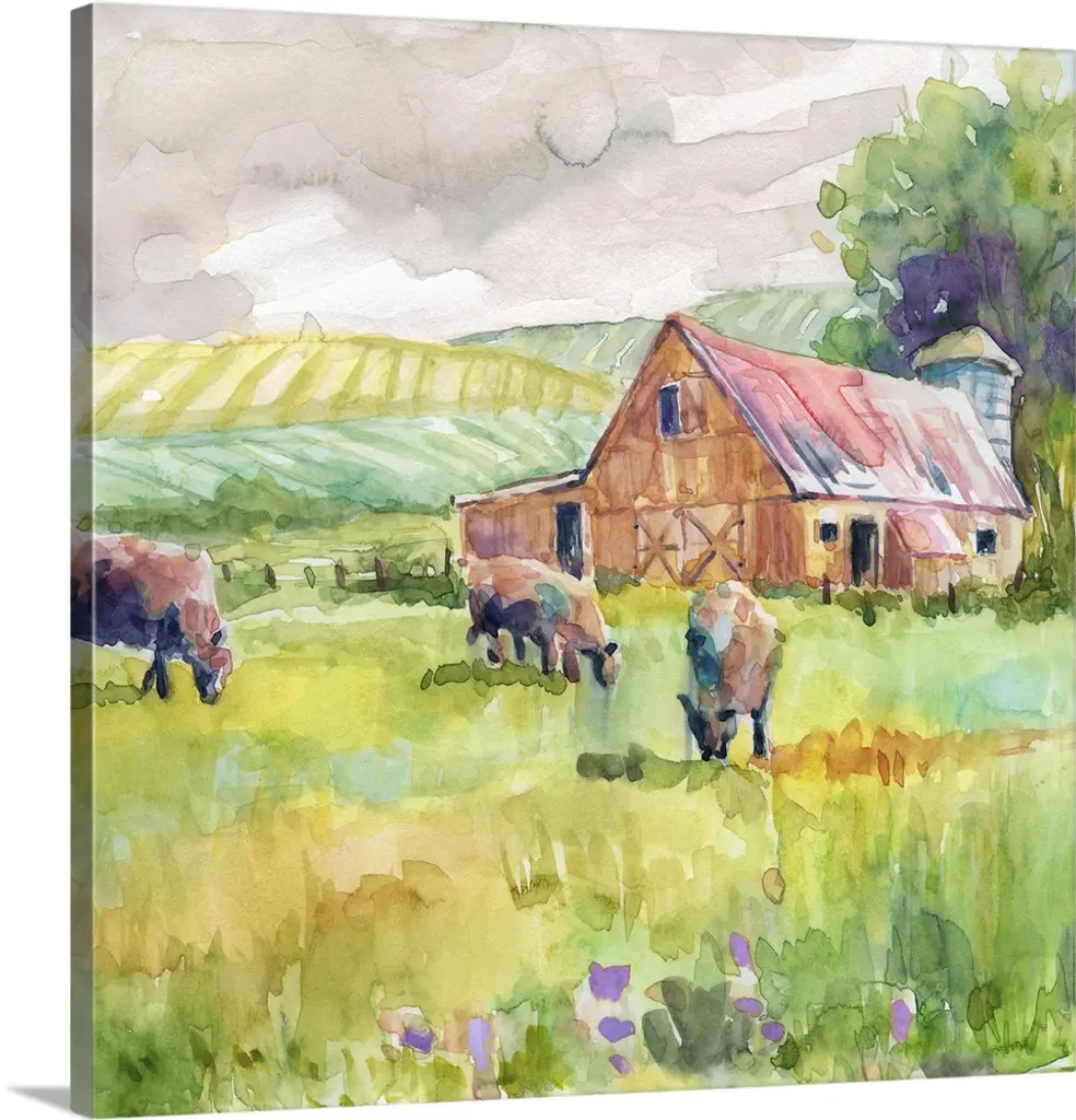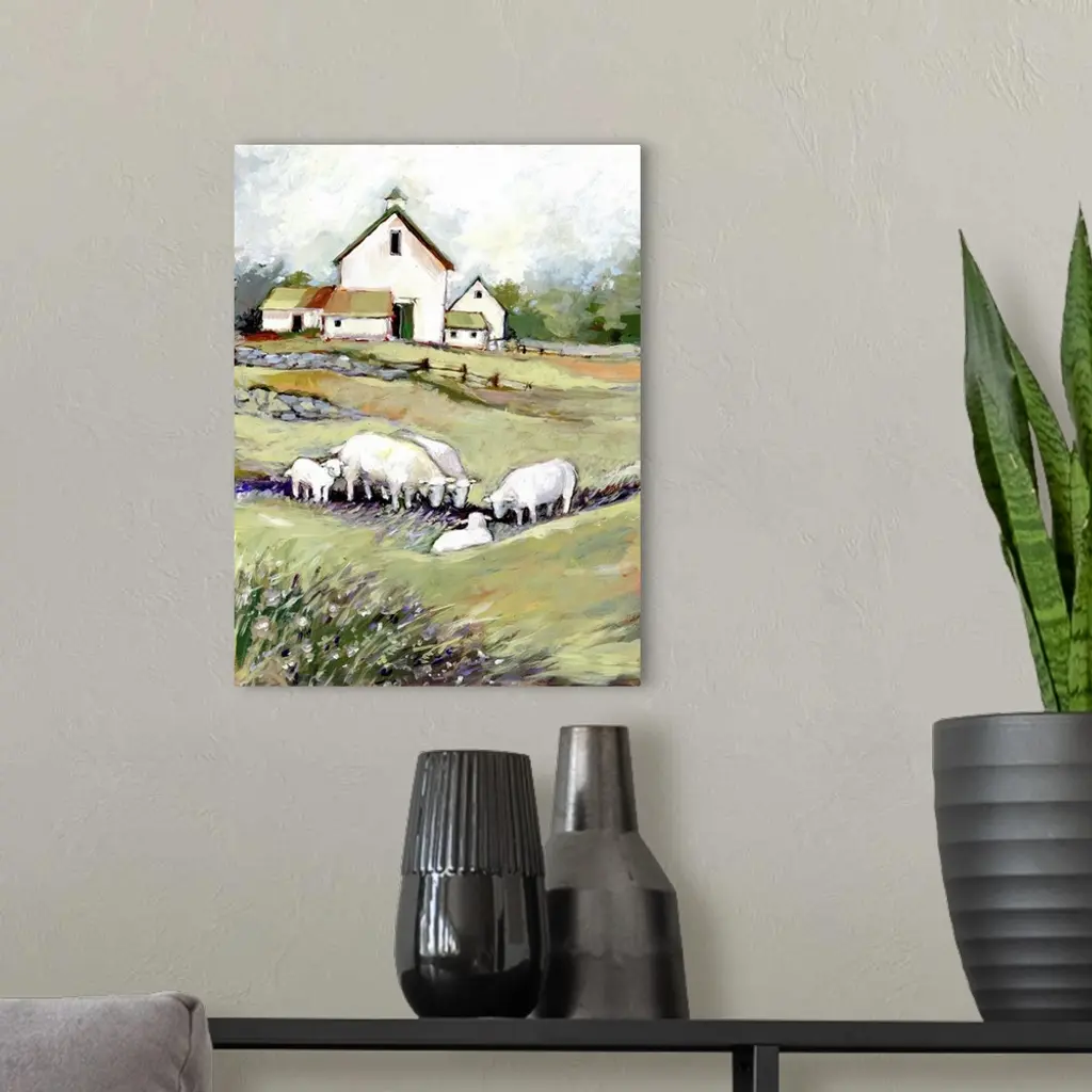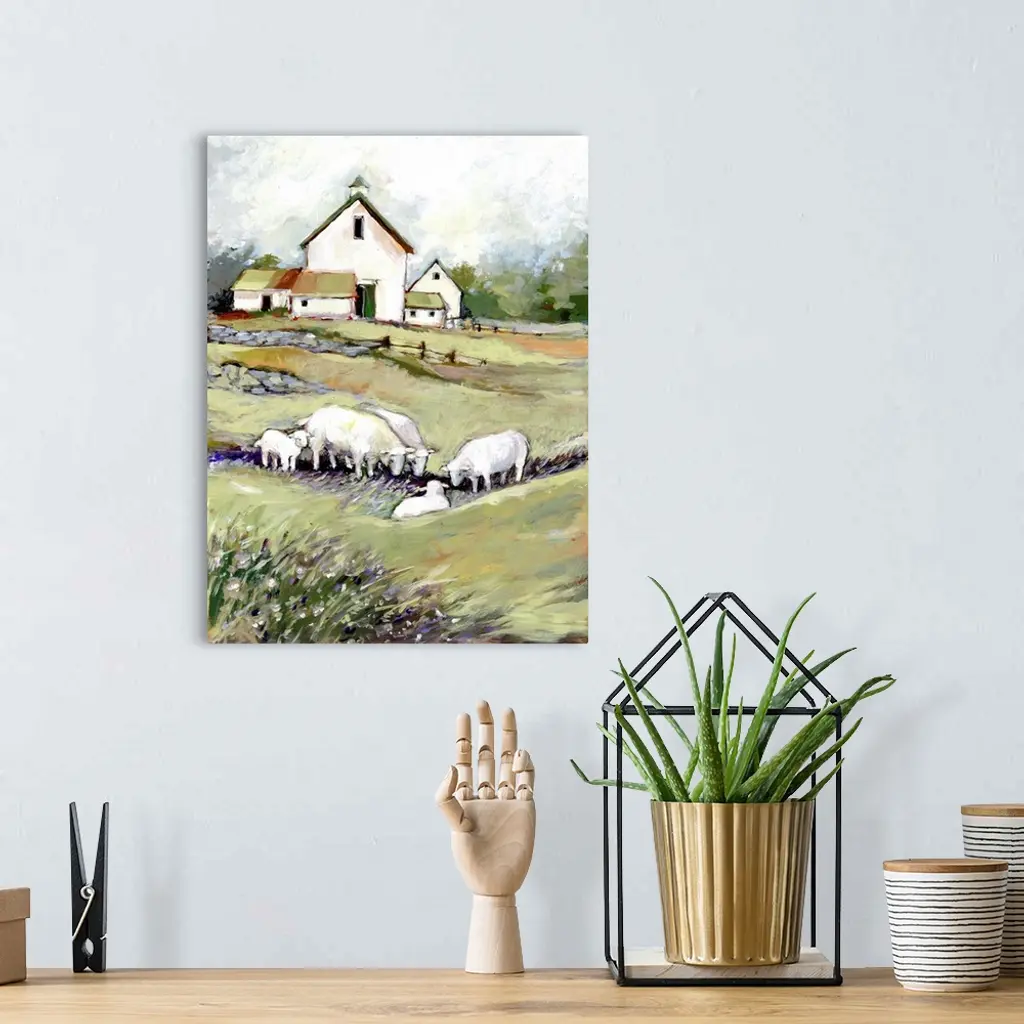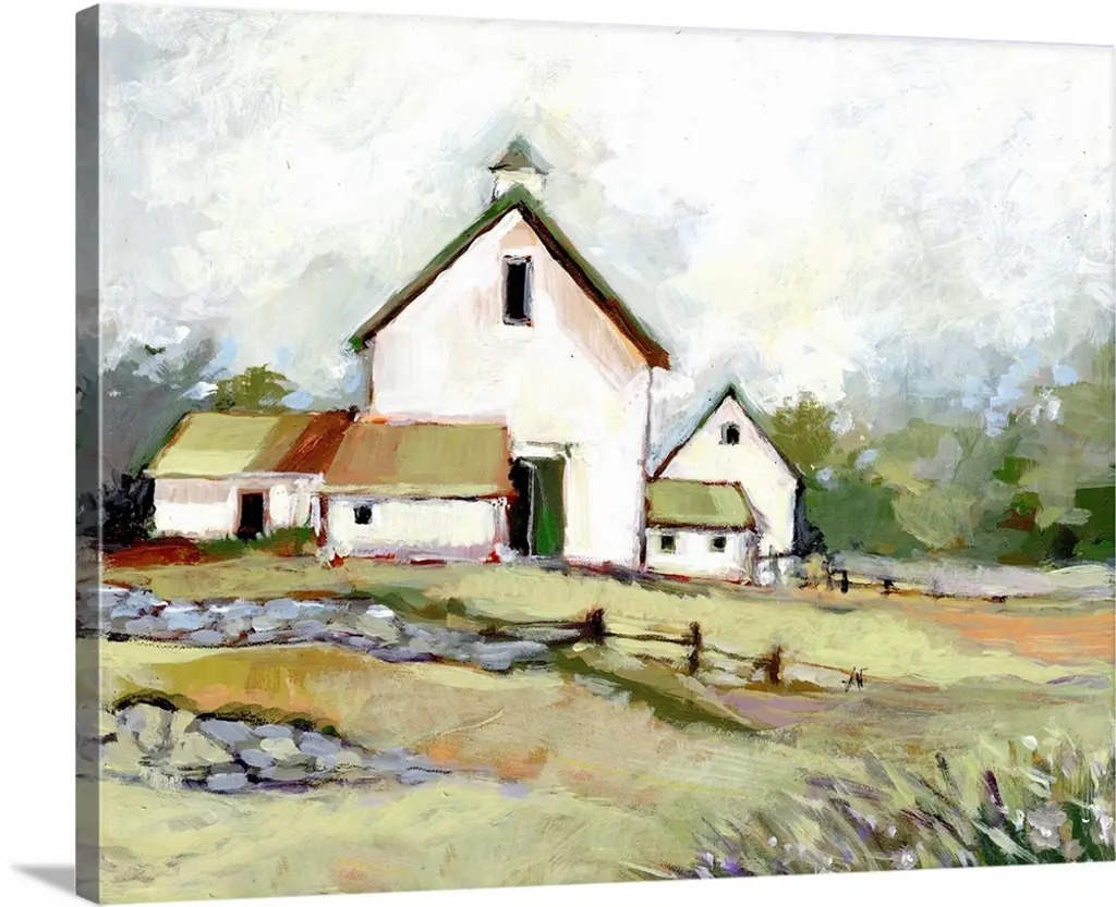 A rustic farm vignette in neutral tones evokes a sophisticated country sensibility