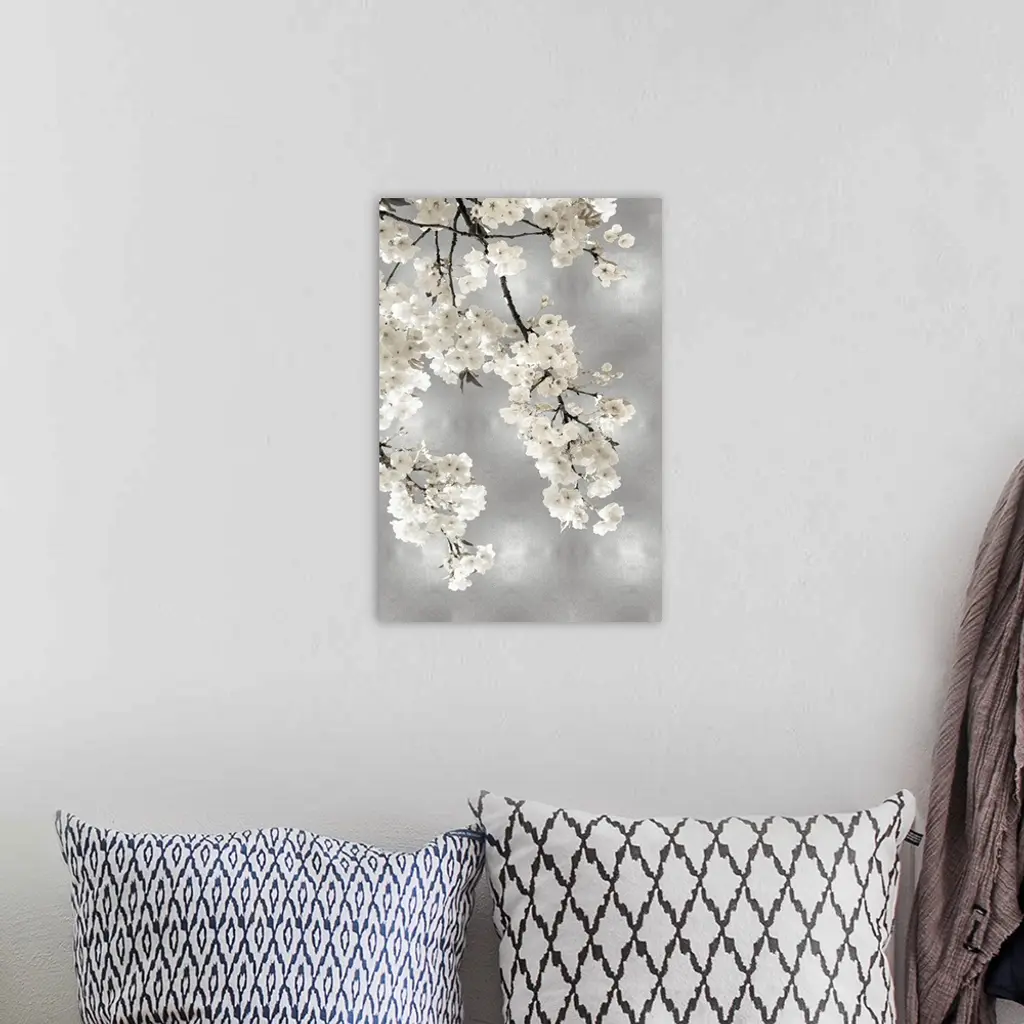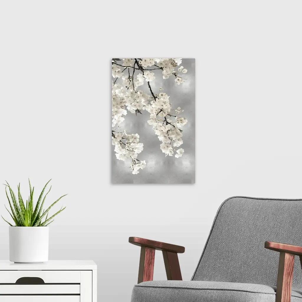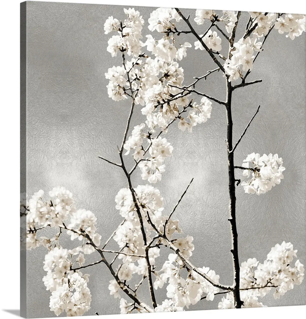 White Blossoms on Silver I wall art for home and office decor. Discover canvas art prints, photos, mural, big canvas art and framed wall art in GreatBigCanvas.com's varied collections.