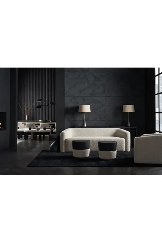 An irresistible mix of texture and elegance, this sculptural sofa embodies chic and comfortable living. Beautifully tailored in a lush boucle fabric, its subtle angles and softly rounded edges evoke calm and a sophisticated finishing touch. Instantly elevating, it makes a stunning focal feature in any interior.