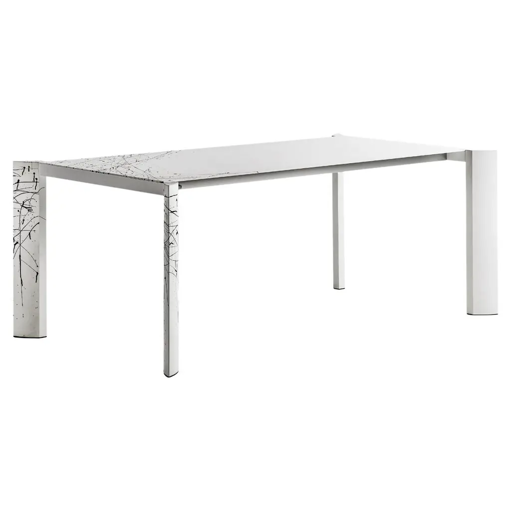 This console from the Standard Geometries Collection exemplifies its distinctive predilection for repetitive and hypnotizing reticular patterns. The rigid contours of its top and legs are the result of a combination of precious white Carrara marble and concrete, revealing a stunning visual effect emphasized by the bold brushed steel profiles also underlining their thickness. Please contact the Concierge for available customizations.