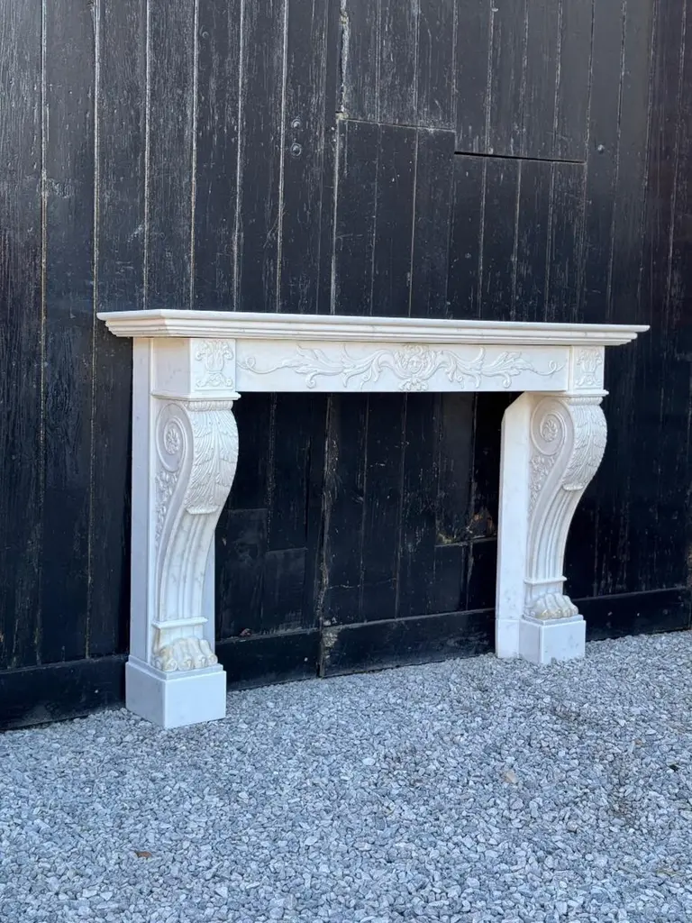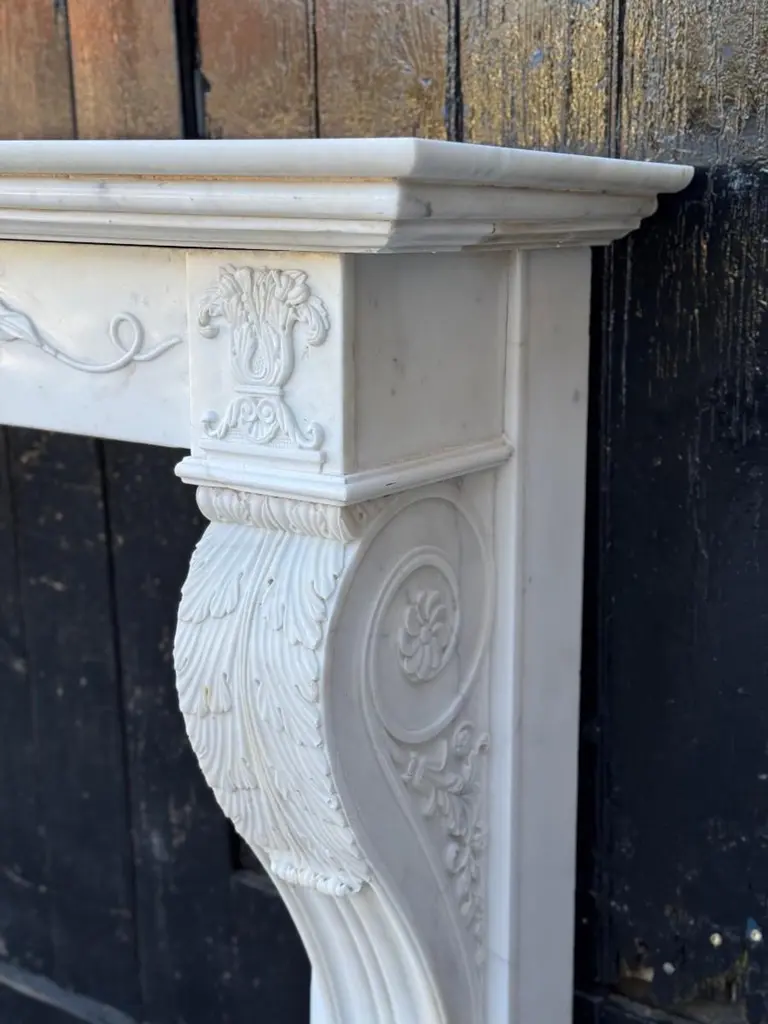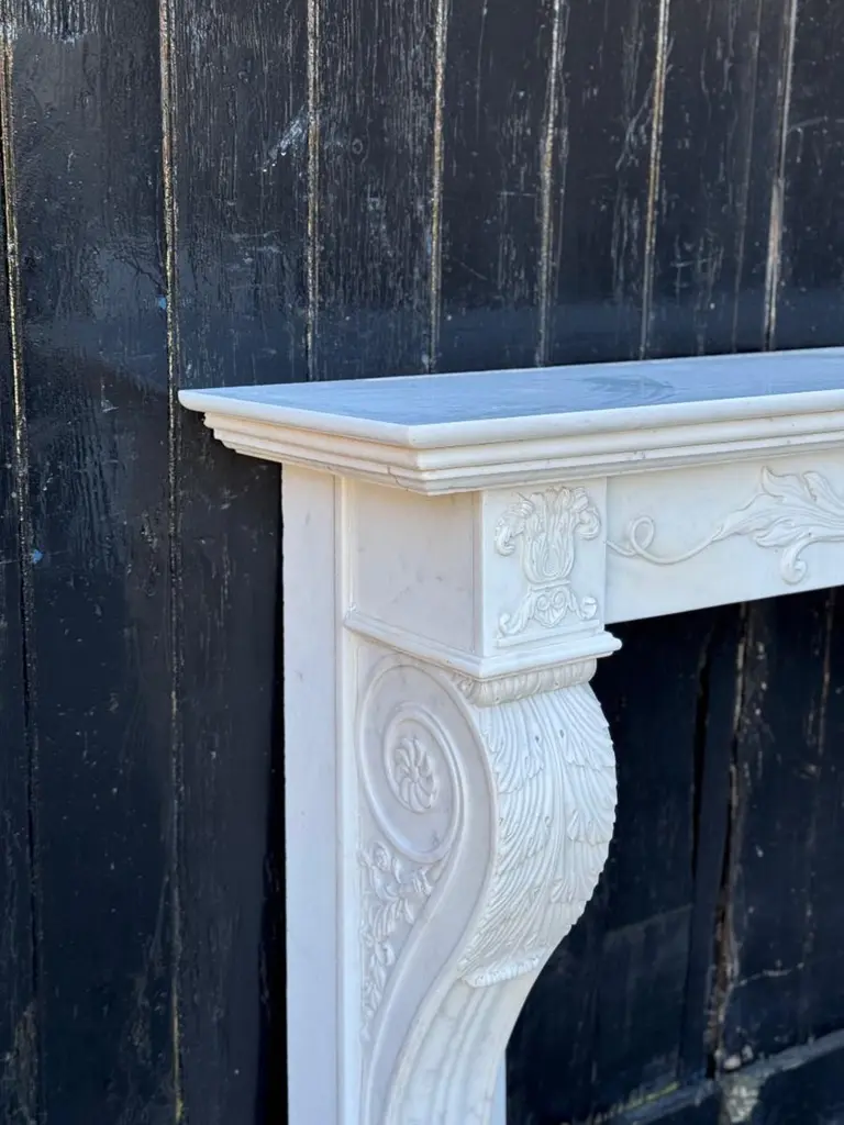 White Carrara Marble Charles X Mantel, 19th CenturyFireplace dimensions: 82,5 x 110 cm