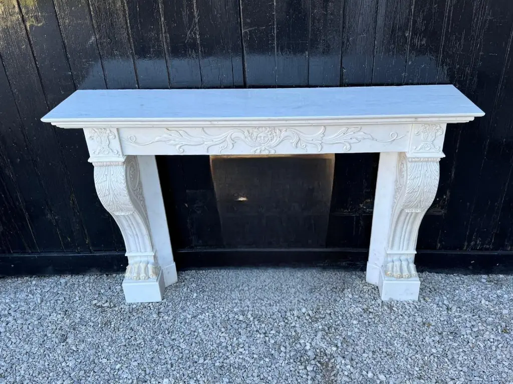 White Carrara Marble Charles X Mantel, 19th Century