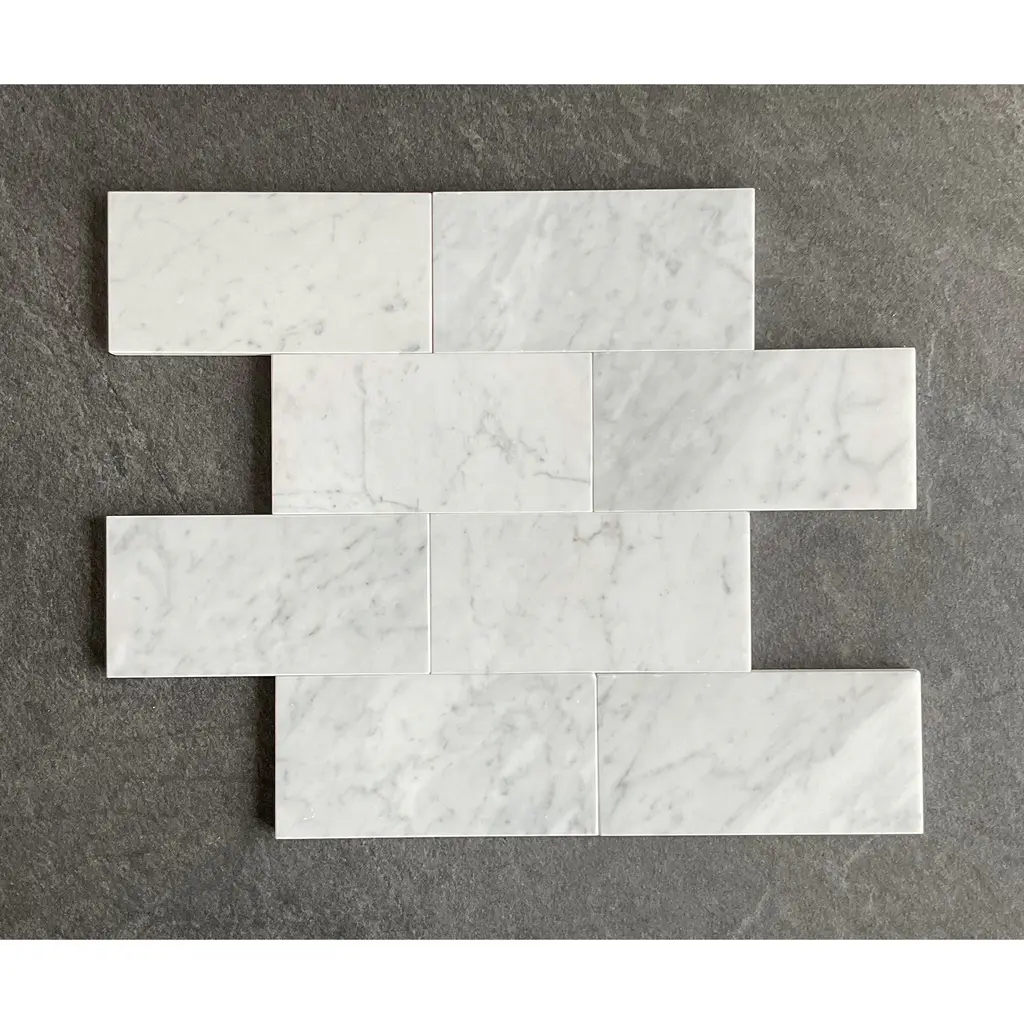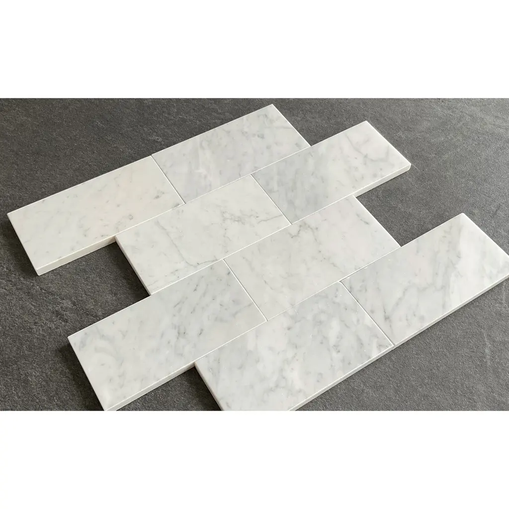 White Carrara Polished 3 X 6 Subway Wall And Floor Tiles - Case (8 Square Feet) - Case (8 Square Feet) - White Carrara