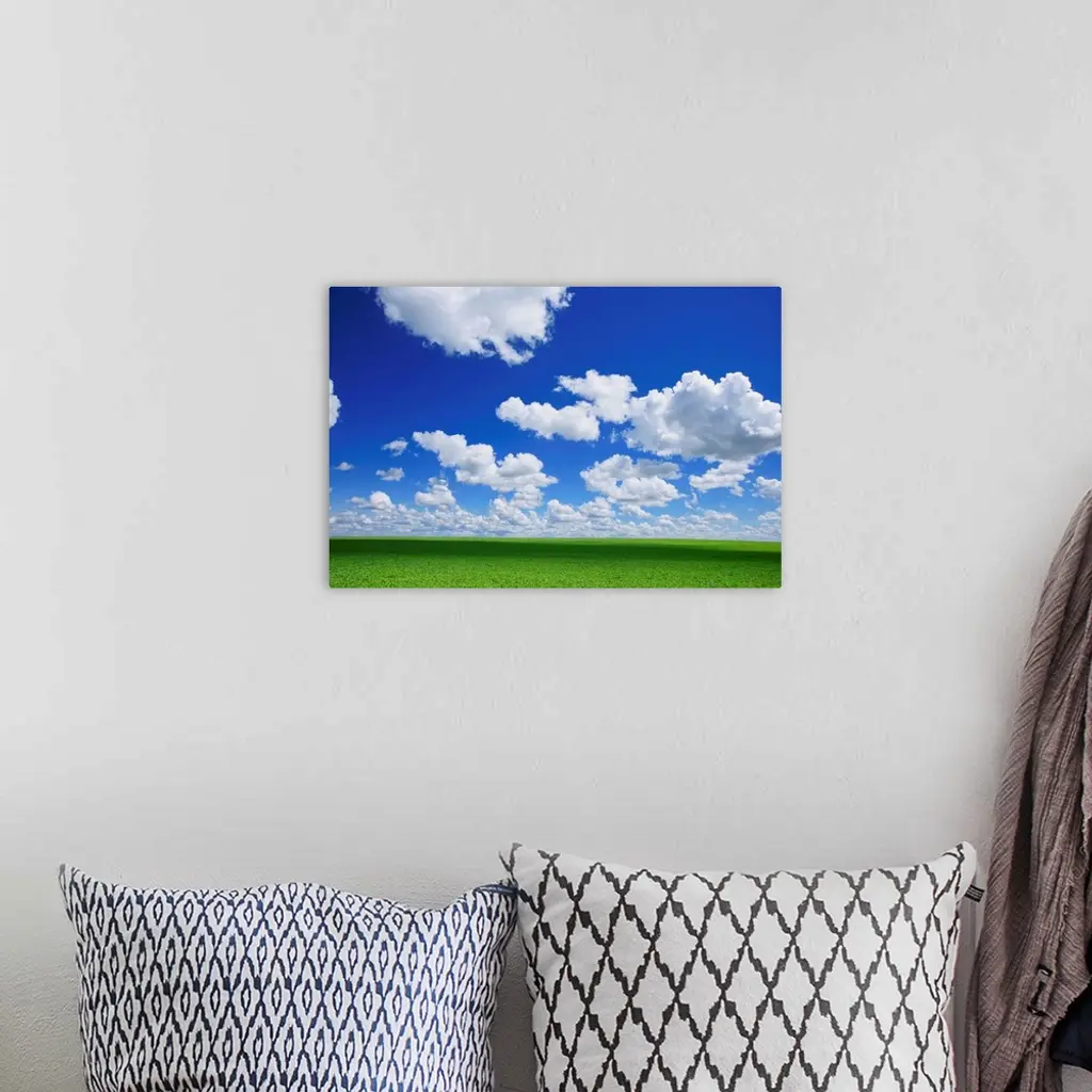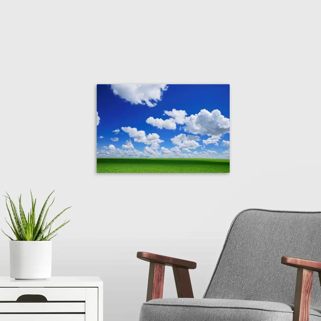 White Clouds In The Sky And Green Meadow wall art for home and office decor. Discover canvas art prints, photos, mural, big canvas art and framed wall art in GreatBigCanvas.com's varied collections.