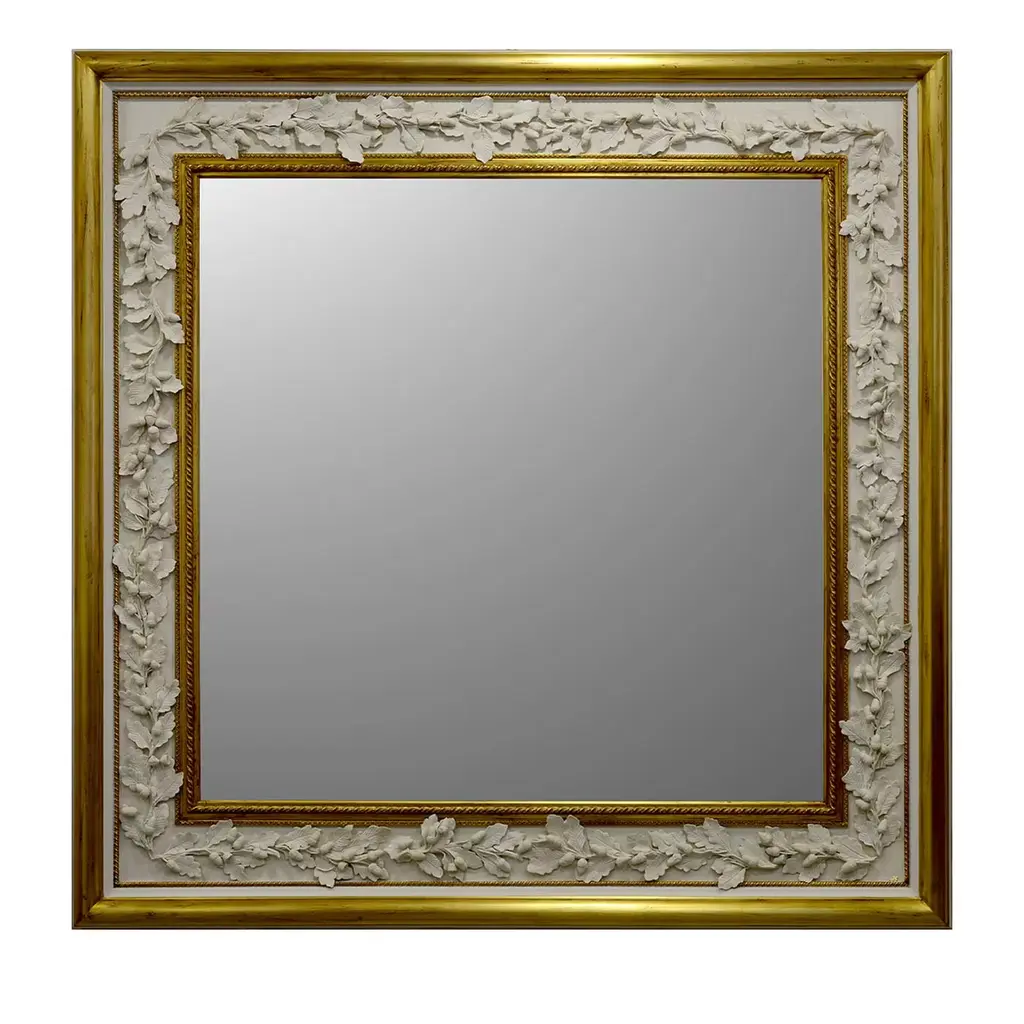 Patinated green lacquered wooden frame with applications of Capodimonte porcelain flowers and buds painted with third-fired colors. Internal measurements cm.50x50. Please, contact the Concierge service for further information.