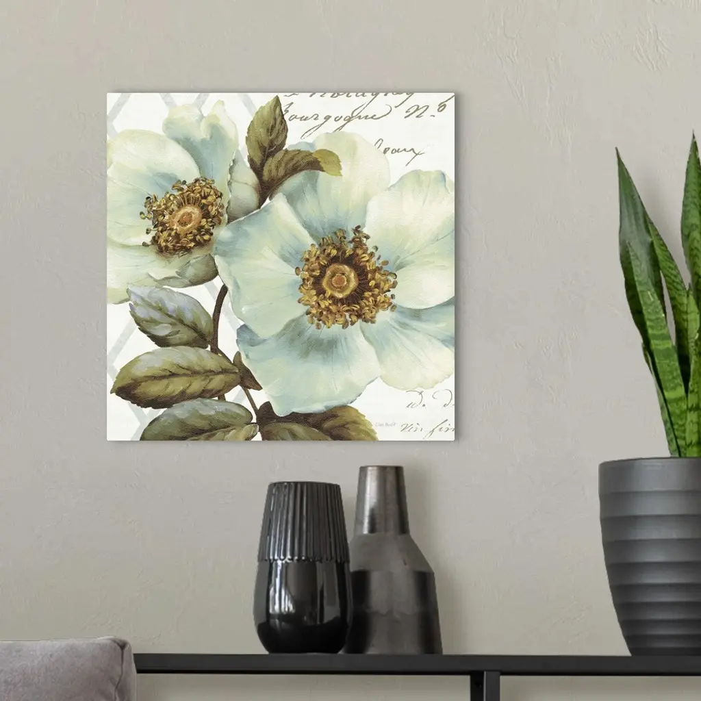 White Floral Bliss I wall art for home and office decor. Discover canvas art prints, photos, mural, big canvas art and framed wall art in GreatBigCanvas.com's varied collections.