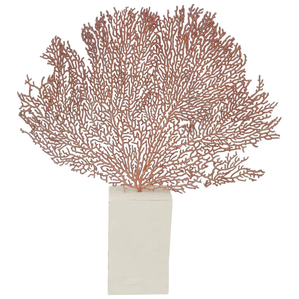 White Gorgonia Coral On Walnut Base