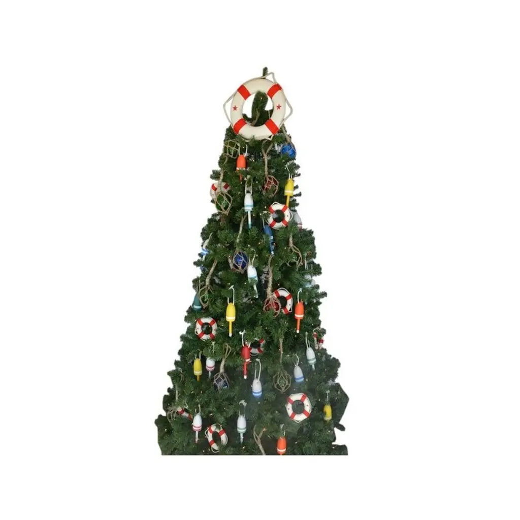 Specification:Description:Gather 'round and celebrate the holidays with this White Life ring with Red Bands Christmas Tree Topper Decoration. Perfectly combining the warmth of the holiday season and the nautical sea-faring lifestyle, this life ring decoration lights up any tree and adds the final nautical touch your Christmas needs. This classic life ring nautical themed Christmas tree topper easily mounts your treetop and is sure to be this year's standout Christmas decoration!Features: