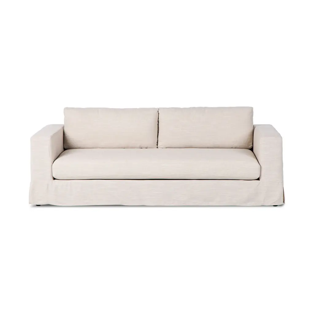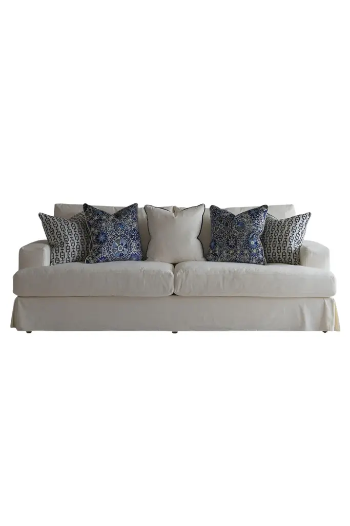 Formed of clean lines, this sumptuous sofa is designed for pure relaxation. Large seat and back cushions are generously filled with an oh-so-soft fiber mix, giving Strand gorgeous sink-in comfort. A soft white linen removable loose cover fits snugly over its frame, which along with its spacious seat depth makes it perfect for a selection of your favorite Andrew Martin scatter cushions.