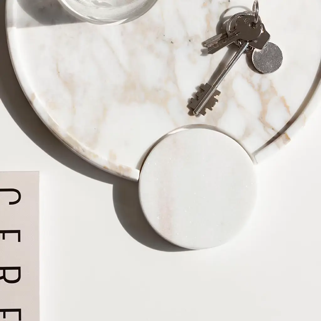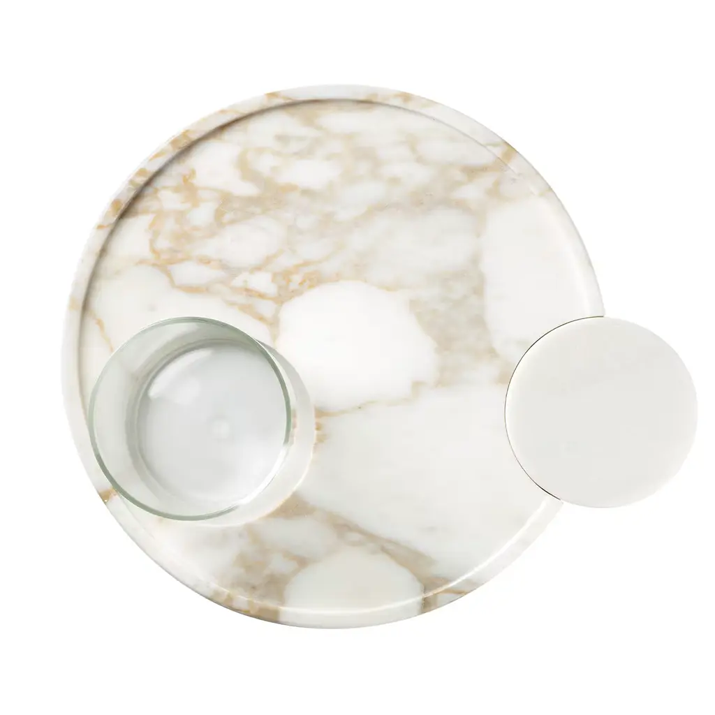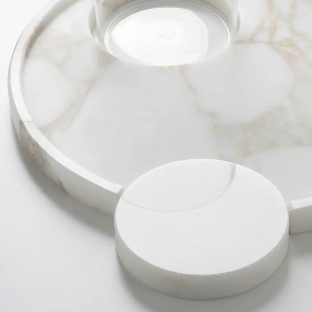 Cerchi-amo is made of two peaces that can be complementary or used separately. The tray set is composed of a white Calacatta marble large circle and a white Lasa marble small circle. Cerchi-amo marble trays by SlowDesign44 are handcrafted with passion and care by master artisans. The set is completed with Easy 06 clear glass and Easy 01 vase; are a borosilicate glass, a very resistant material without impurities. Please ask Concierge for customization details.