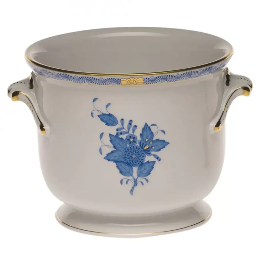 A superb object of decor, this cachepot will elegantly house a plant, serving as a superb decoration anywhere in the house. The sinuous ceramic curves are handmade on a lathe and finished in a striking white color. The ornate mini-handles that adorn the sides are hand-applied and -painted in precious gold. This luxurious finish also occurs on the flared mouth, which is decorated with a technique distinctive of Sambuco creations that reveal a mosaic effect. Thee gold on top and bottom rims complete the piece, which is fired three times in the kiln to preserve its elegant colors.