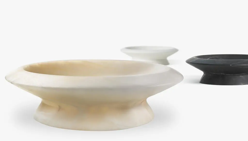 White onyx Amaltea by Ivan ColominasDimensions: 36.5 x 10 cmMaterials: Onice BiancoAlso Available: different marbles.The collection is a tribute to one of Italy’s great masters of design and architecture: Angelo Mangiarotti, creator of symbolic, marble design pieces, who is closely connected to the Apuan region and its craftsmen. The essential is visible, with a collection that offers infinite applications: serving, decorating, presenting, containing, tasting. The “material is served”, flawless and delectable.Ivan Colominas studied industrial design at the UCH-CEU in Valencia, where he also attained a Master’s of Transportation Design. The collaboration with several international firms has, in recent years, led him to work across a diverse range of sectors: from automotive, to sporting goods and home accessories. His design research is heavily influenced by 20th century iconography: focused on delivering products that, while belonging to a digital age, convey analogue qualities. Colominas’ work has garnered six Red Dot Awards and has been published in specialised media worldwide.