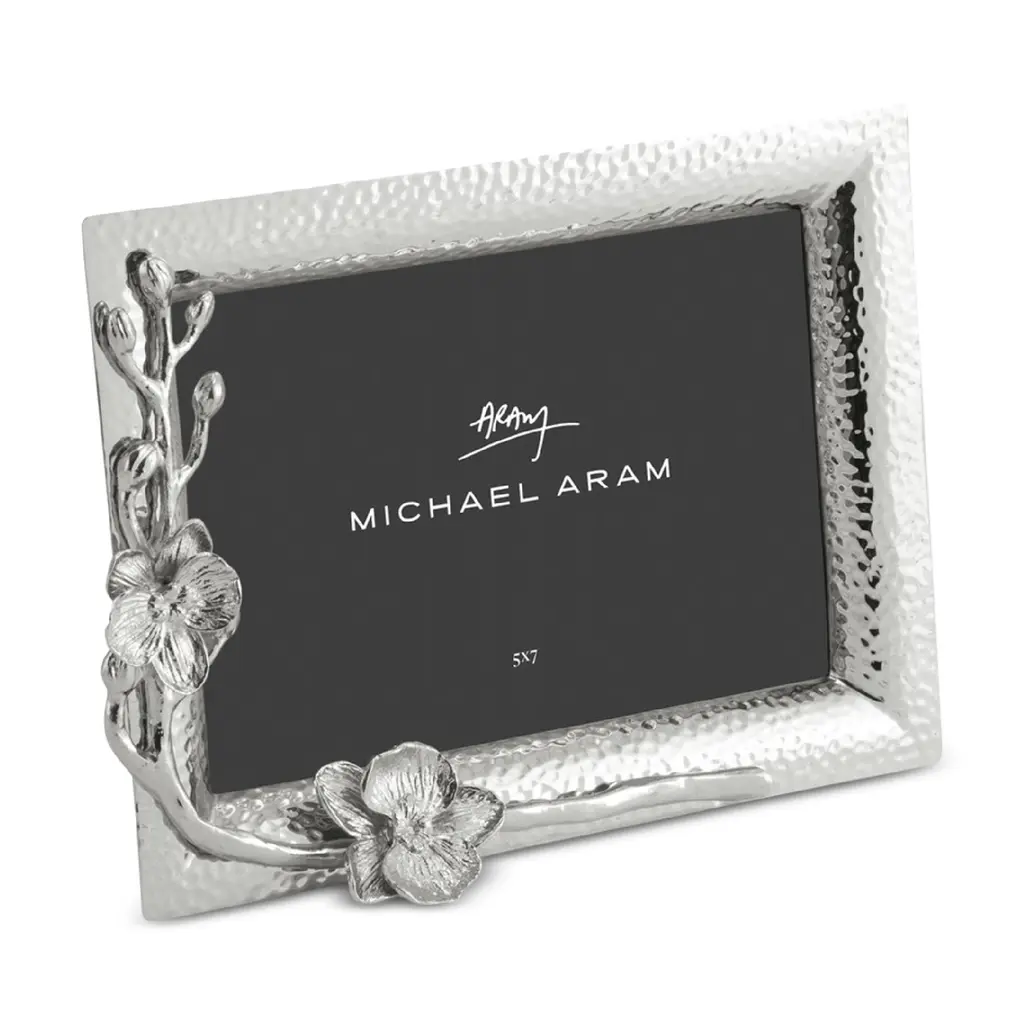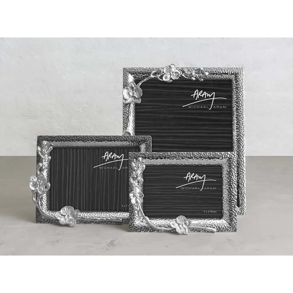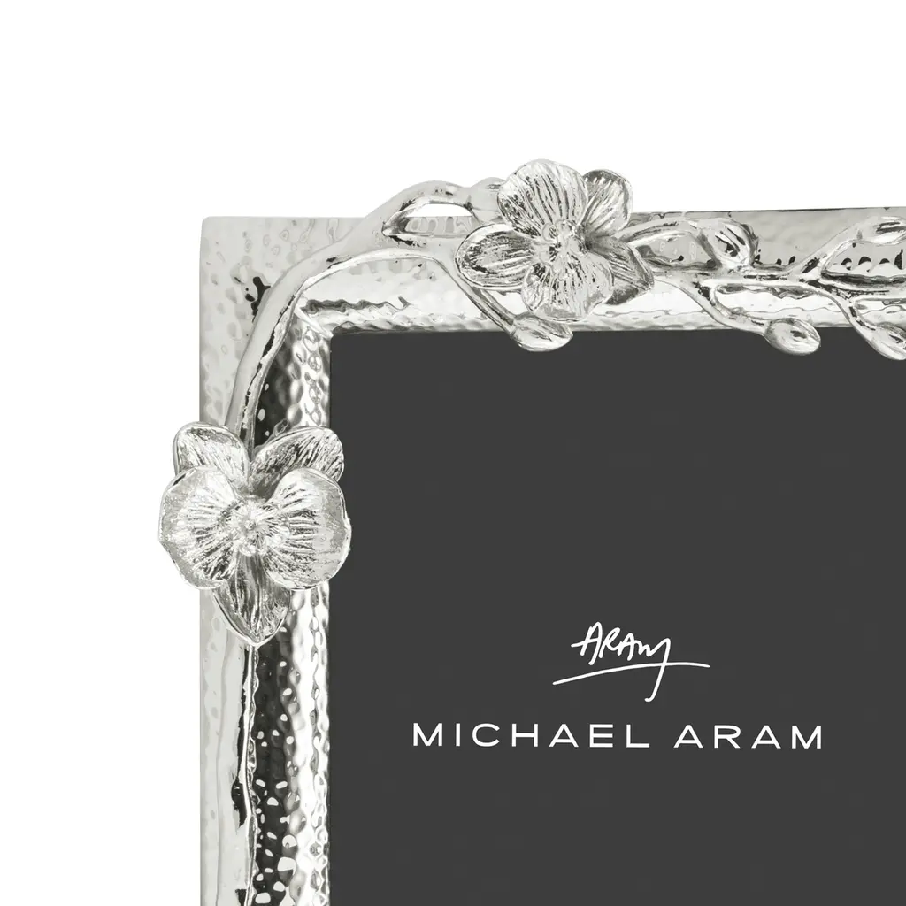 A bright nickelplate finish enliven's Michael Aram's sculptural botanical frame. Each piece is decorated with blooming orchid designs rendered in fine, delicate detail.