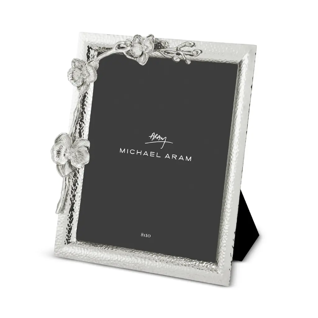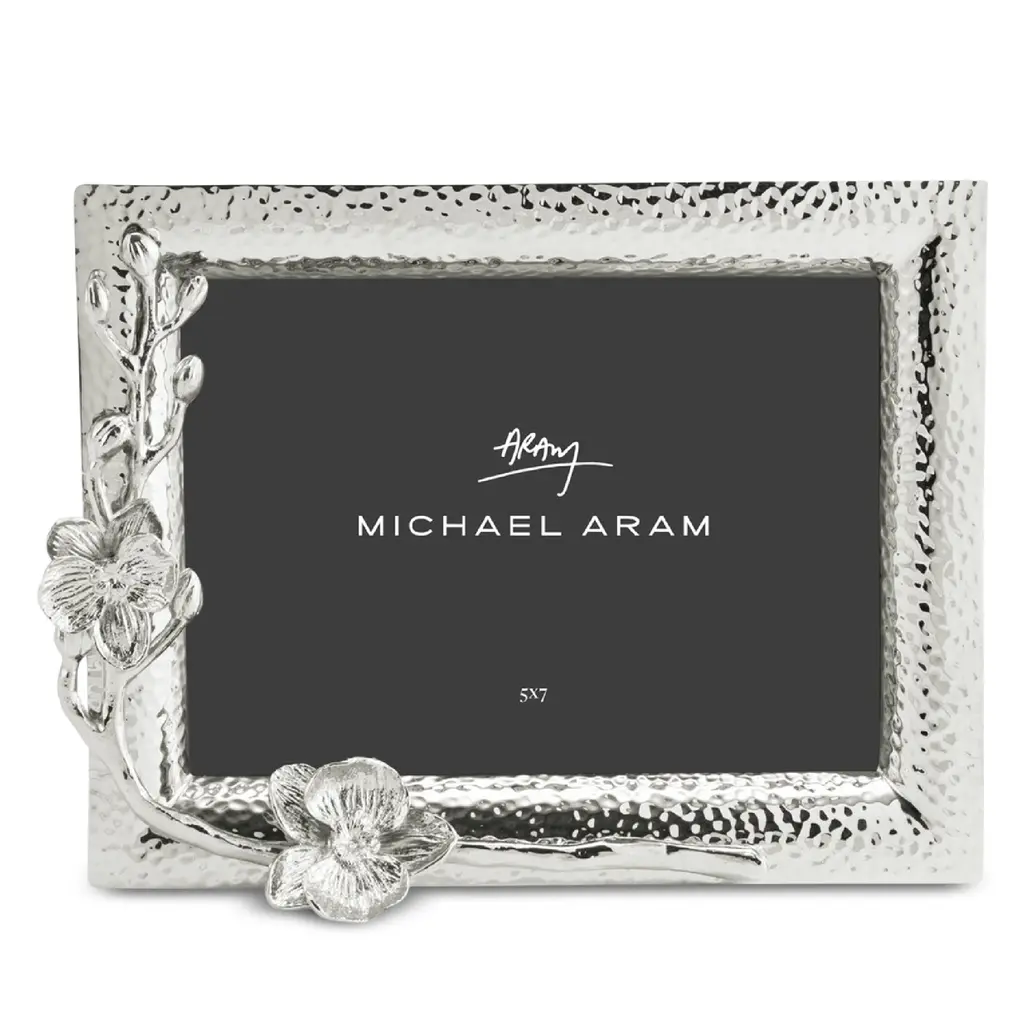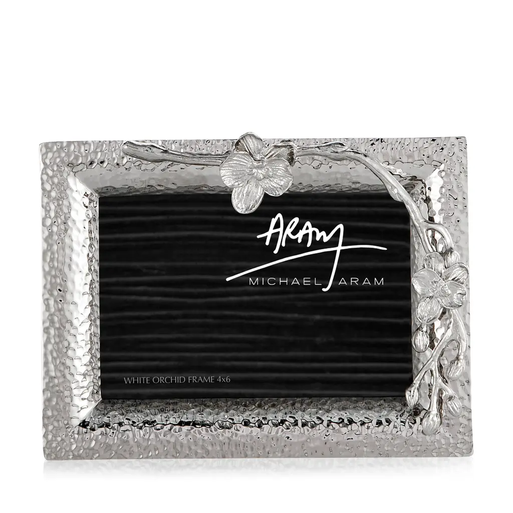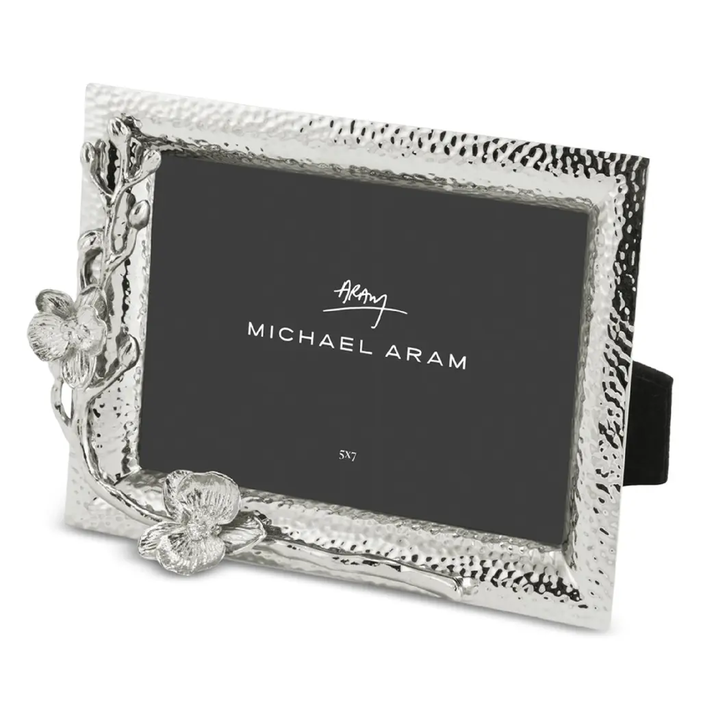 A bright nickelplate finish enliven's Michael Aram's sculptural botanical frame. Each piece is decorated with blooming orchid designs rendered in fine, delicate detail.