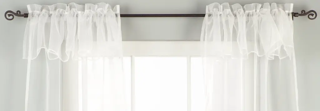 White Rod Pocket With Attached Beaded Valance Sheer Tissue Curtain / Drape / Panel - 84" - Piece