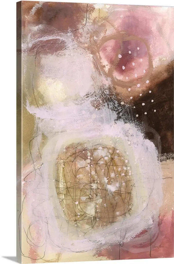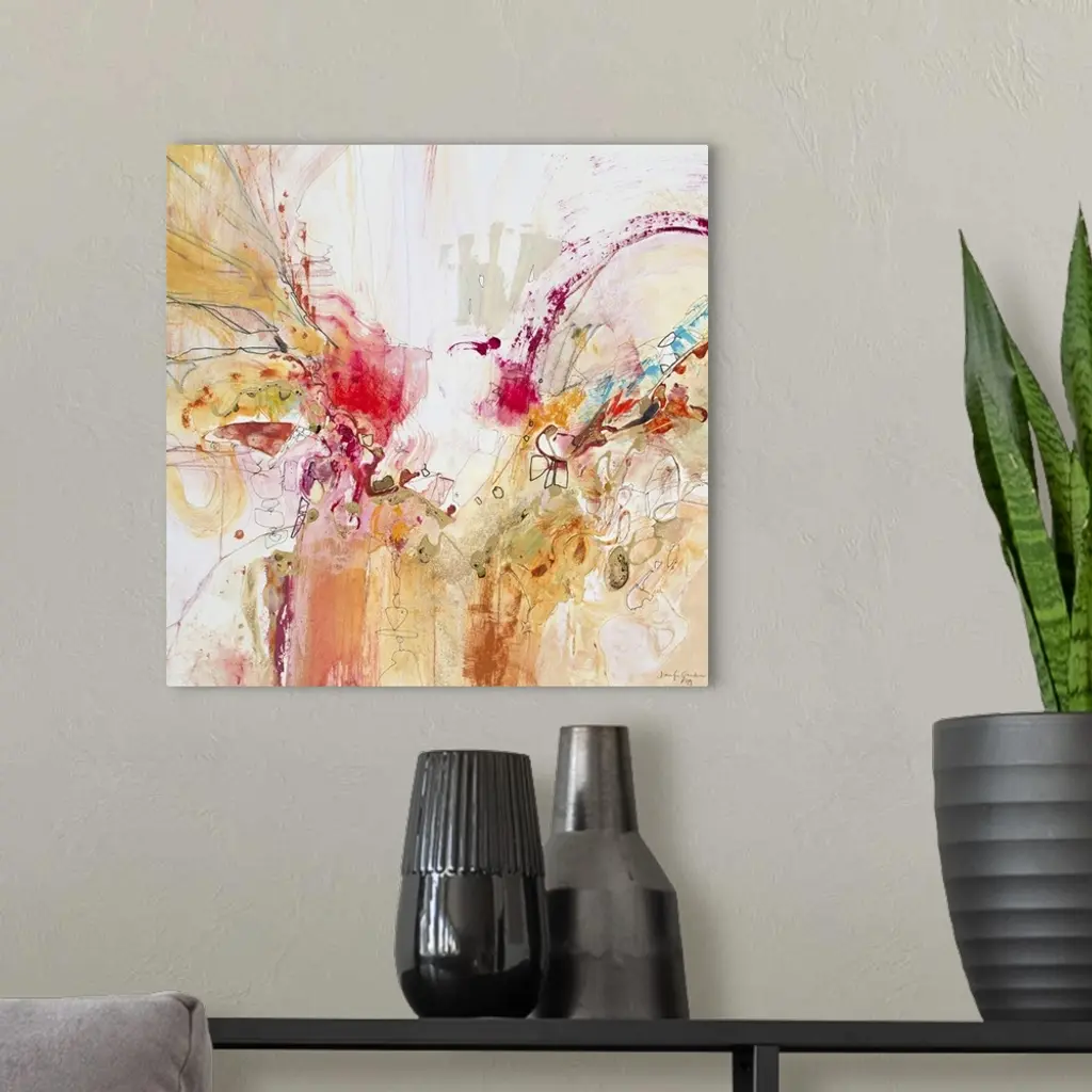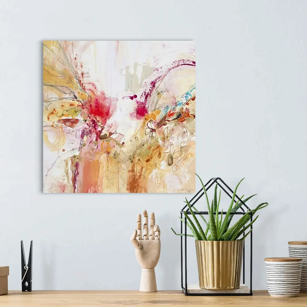 Contemporary abstract art, originally in acrylic, ink, and watercolor, of splatters in red and orange.