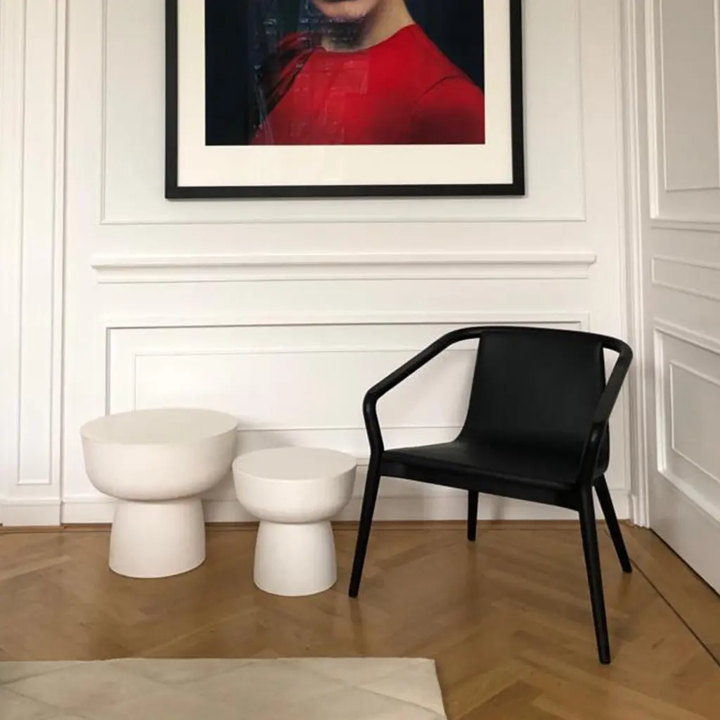 The 'Mushroom Solid' table is part of our mono-material object collection. A rather sculptural piece of furniture, it is both dominant and serene with its raw appeal, simplicity and solid material.Design: Alentes Atelier Made by hand in Greece, EU.SIZETALL D48cm / 18.9”, H44cm / 17.3” approx 45kgr / 99lbsLOW D37cm / 14.5”, H36cm / 14.2” approx 21kgr / 46lbsUSEThese tables can be used either Indoor or Outdoor.COLOR / TEXTURETop: white smooth surface with white marble specs.Body: White smooth surface.Very refined matte varnish.MATERIALThe MUSHROOM SOLID tables are made from cast stone. Mixed and poured by hand, they are assembled and sealed with a specialized, highly protective coating, which makes the surface non-absorbent and spill-resistant. The tables can also be used outdoors, and as with any natural material, it is recommended to be placed under a covered area where there is no standing water. The tables come in a set of Tall and Low sizes and are ready to be placed.CARE INSTRUCTIONSLift the table from the top body with both hands. Place the table vertically and gently. Use the table indoors or outdoors. When outdoors, store under covered areas where there is no standing water - cover/store indoors during inclement weather. Clean with just a damp cloth. Don’t pull, drop, or drag the table. Don’t tilt the table on its base to lift it. Don’t drop hard/heavy objects on the top surface edges. Don’t leave spills unattended. Don’t use hard chemicals to clean. GUARANTEEWe guarantee that all of ALENTES' products are free from manufacturing faults and defects for 24 months from the original delivery date. In the unlikely event that a product is proven to be defective, you are entitled to the restoration of the goods through repair or replacement, whichever is decided as being the most efficient and effective remedy. The guarantee does cover: the possible dismantling of the object’s parts and casting cracks that are larger than hairline cracks (>1.0mm). The guarantee does not cover: damages that are caused by not following the care instructions, erroneous maintenance and/or improper use of the goods, chipping of top/bottom edges resulting from not following the care instructions, water corrosion damage that results from not following the care instructions, discolouration due to extreme weather conditions, hairline cracks that are 1.0mm or smaller.In the rare case that your product appears faulty, please contact us immediately. We will consider your claim as quickly as possible and correct it to the best of our ability. Based on your photographs, we will assess whether the complaint is based on a deficiency of manufacturing or material nature, or whether it is due to normal wear and tear. Defective items will be replaced or refunded if the replacement with the same product is not possible. We will arrange with you to send us the item back and we will replace it free of charge and shipping costs. We will operate with the utmost speed to reduce waiting times.DAMAGE DURING SHIPPINGALENTES packages its goods according to the fragile items method, to minimize any breakage during shipping. Unpack and inspect your order immediately upon delivery. In case of damage during shipping, send us an email with a report and photographic evidence within 3 working days upon delivery. All our ALENTES arranged FEDEX shipments are insured during transport, so any damaged goods during shipping will be replaced.RETURNSOur products are typically made-to-order, so we do not accept returns or refunds unless there is a technical issue with the product. If however, for any other reason, you wish to return the product, a return for this item may be initiated within 14 days of delivery. In this case, the Buyer is responsible for the return shipping charges as well as the original shipping cost., the customs duties and taxes for export and import back into the country of origin. Items must be returned in the packaging and condition received.Please note that shipping costs from November through January may vary due to seasonal holiday pricing. If your order falls within this period, we will confirm the final shipping cost upon purchase.