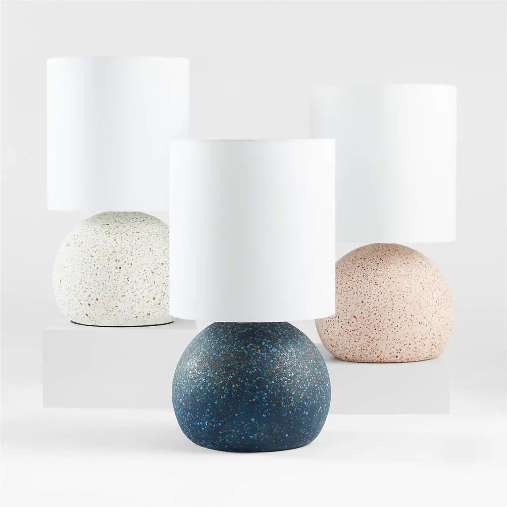 Made for mixing and matching, our terrazzo table lamp is a unique lighting design that adds a pop of personality to kids rooms. Featuring a rounded base made of one-of-a-kind terrazzo full of colorful stone chips, the lamp plays with proportion with a tall drum shade. Put it on your kid's nightstand for bedtime stories or use it as task lighting in their study space. The elegant, artful look even works in shared spaces where the whole family hangs out together.
