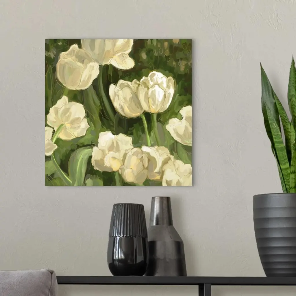 White Tulips II wall art for home and office decor. Discover canvas art prints, photos, mural, big canvas art and framed wall art in GreatBigCanvas.com's varied collections.
