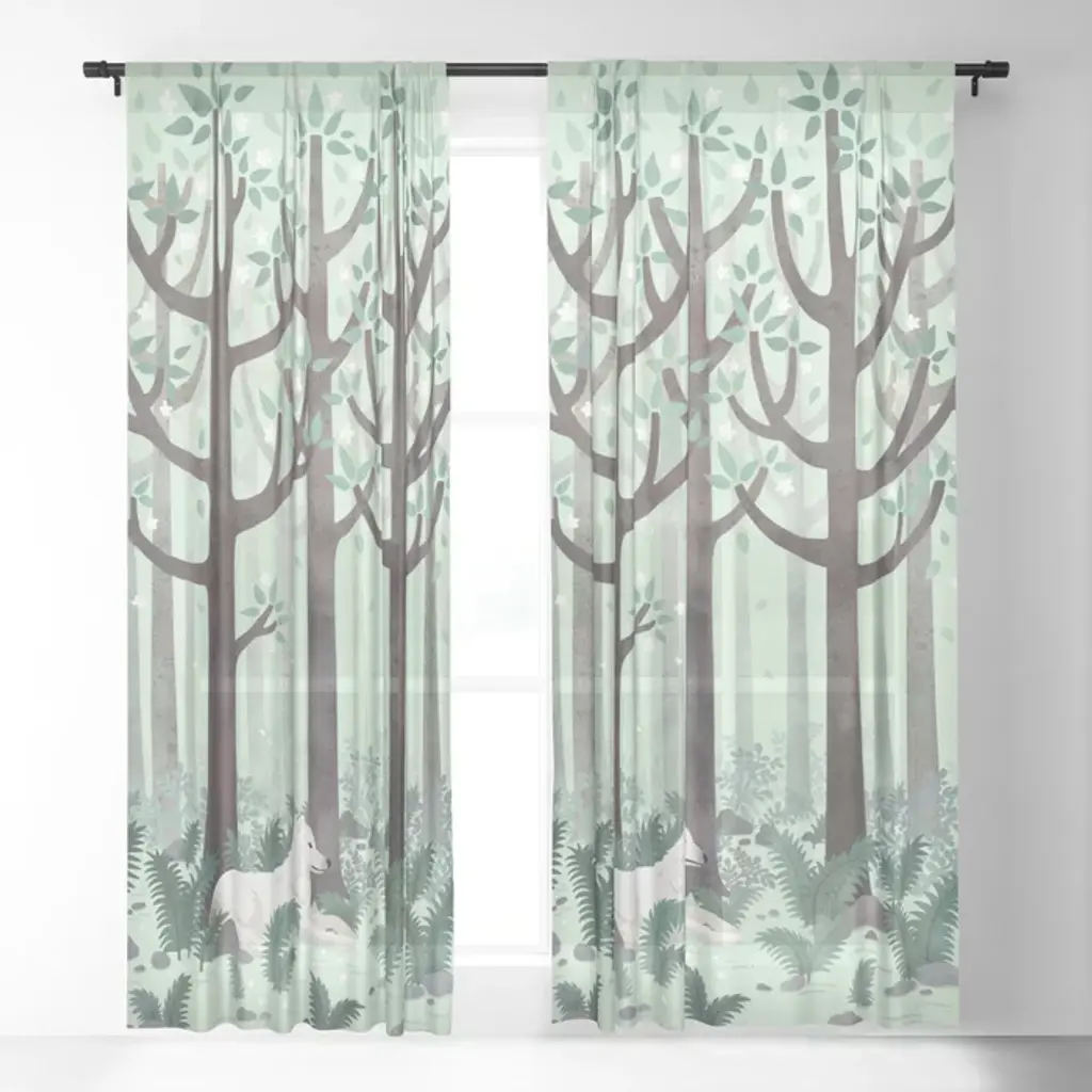 Blackout curtains are crafted with 100% woven polyester with a linen-like texture.Light-Filtering curtains are crafted with 100% mid-weight polyester.Sheer curtains are crafted with 100% lightweight polyester.Single sided print with white on reverse.Available in single or double panel options (double panels feature the same design on both).4" bottom pocket for easy hanging on any curtain rod (please note: artwork will appear upside down on non-patterned designs).Machine washable for easy care.Please note: Color variations may occur between on-site previews, your screen, and the printed fabric.Blackout, Light-Filtering, and Sheer Curtains are easy to care for:Machine wash cold.Use gentle cycle.Tumble dry low.SHIPPING: Items are made to order and typically ship within 3-4 business days. Click here for more information about delivery options.RETURNS: Return requests can be made within 30 days of your item(s) delivery. Click here for more information on returns.