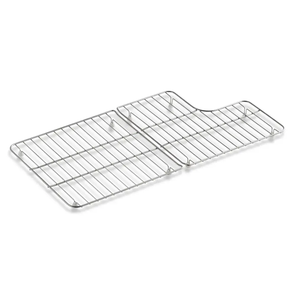 Protect the beauty of your Whitehaven kitchen sink with a pair of sink racks. Custom-fit for the large single basin of Whitehaven self-trimming apron-front sinks; these stainless-steel racks help safeguard your fragile dishes and protect the sink's gloss.