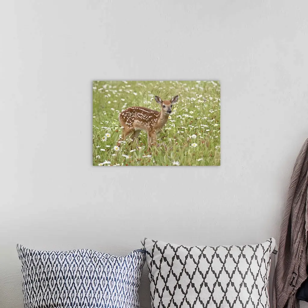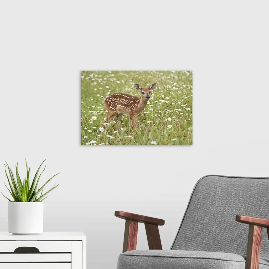Whitetail deer fawn among oxeye daisy, in captivity, Sandstone, Minnesota wall art for home and office decor. Discover canvas art prints, photos, mural, big canvas art and framed wall art in GreatBigCanvas.com's varied collections.