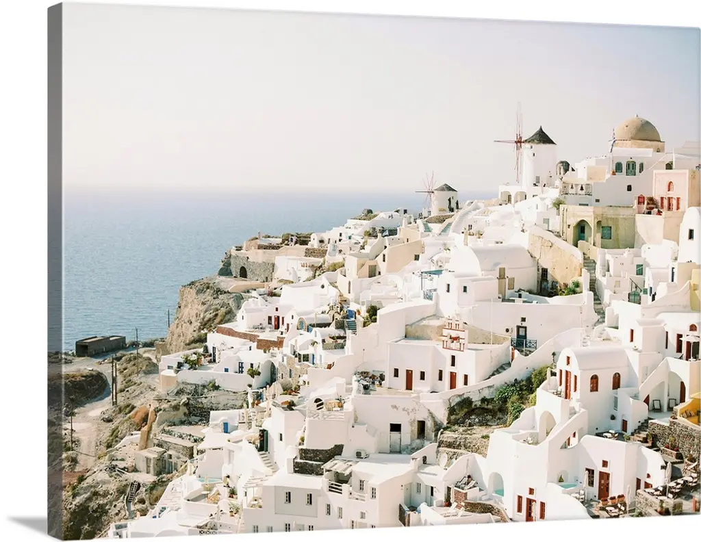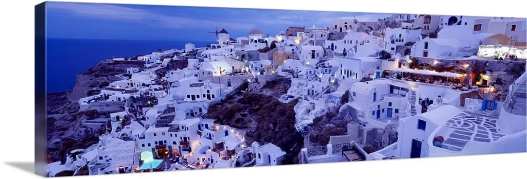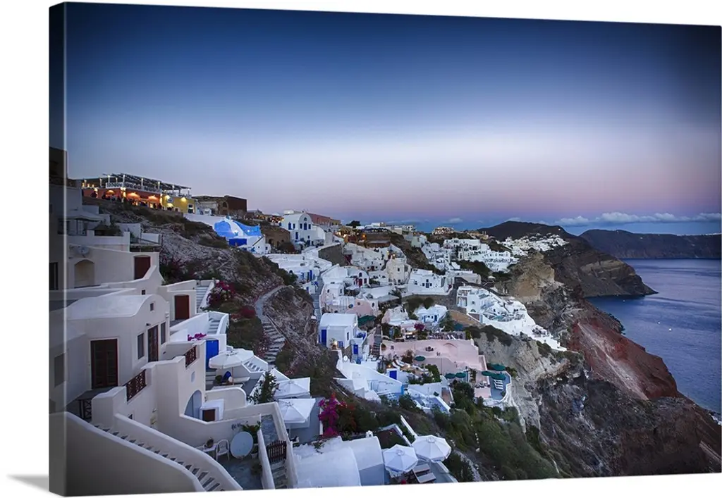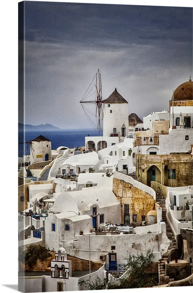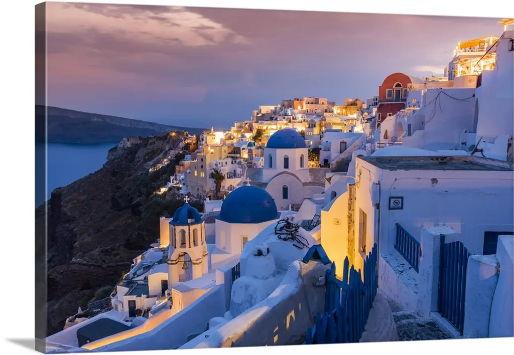 Whitewash buildings and windmill at dusk; Oia, Santorini, Greece wall art for home and office decor. Discover canvas art prints, photos, mural, big canvas art and framed wall art in GreatBigCanvas.com's varied collections.