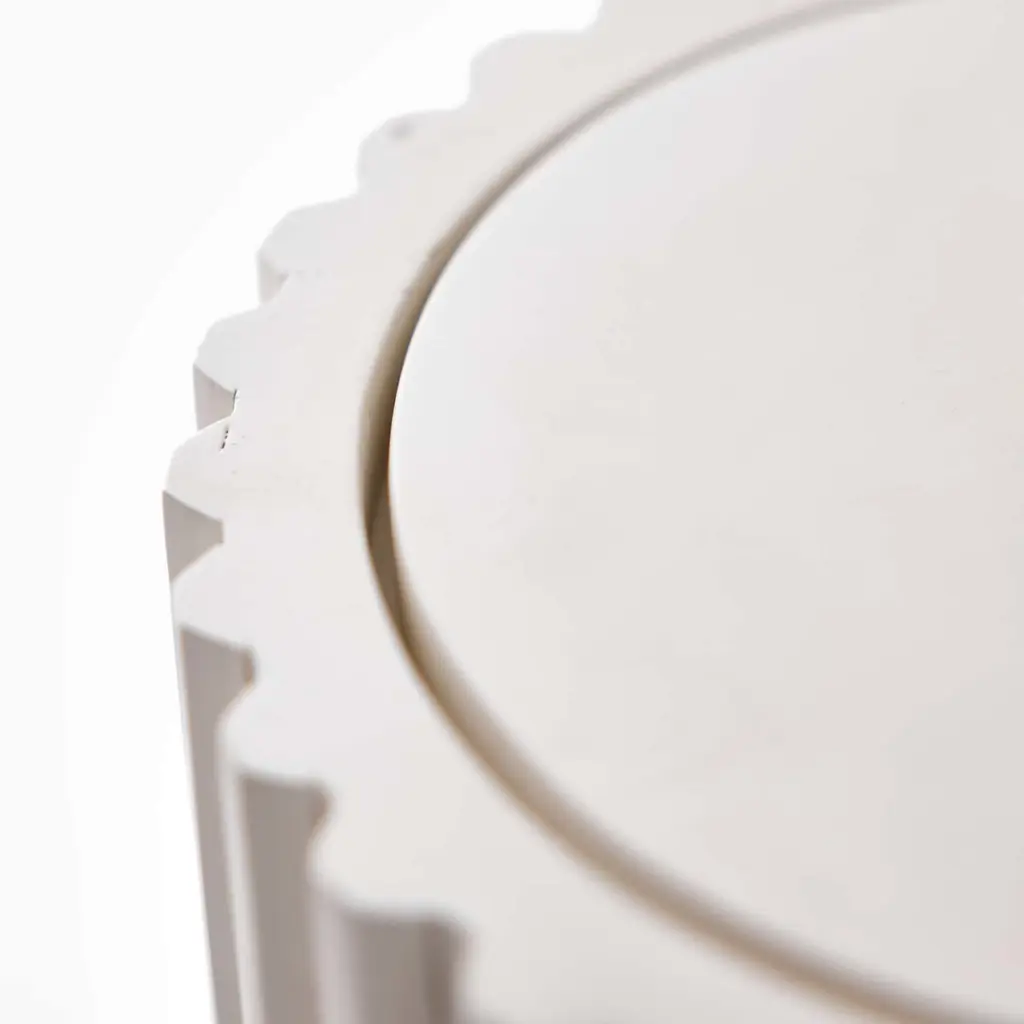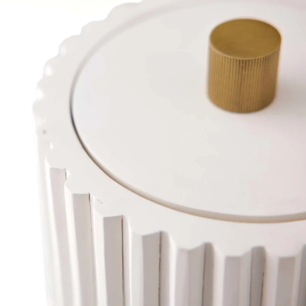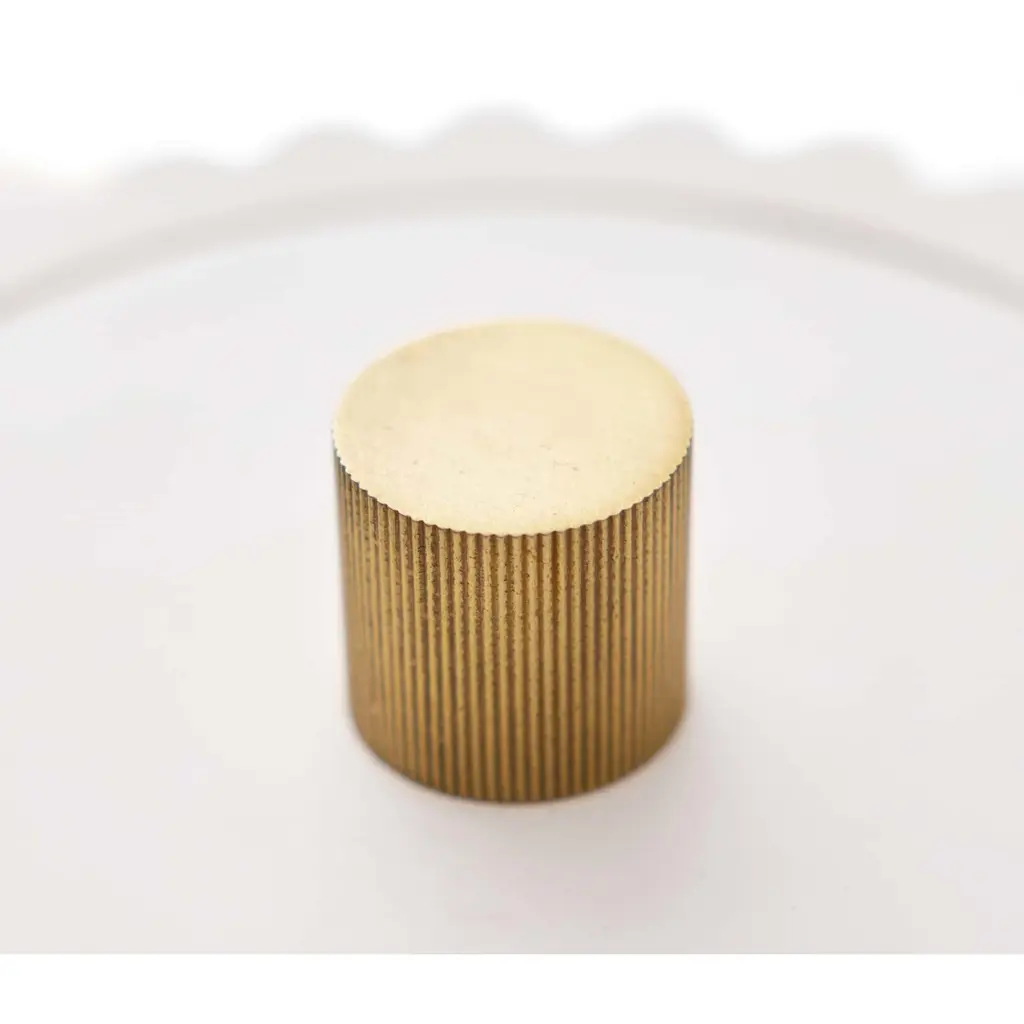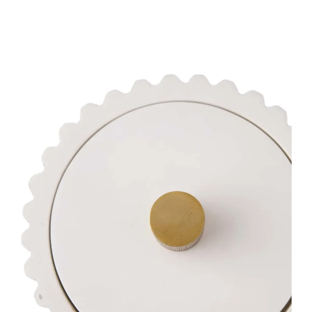 The whittaker’s grooved design, created in stacked, offset discs, offers an industrial nod reminiscent of machine gears. The contemporary cache features a contrasting, notched round knob in an antique brass finish. Carved in ivory resin, the accent is as versatile as it is style packed.