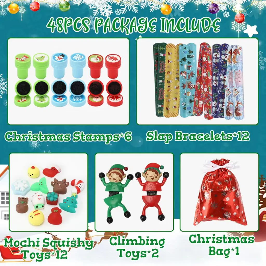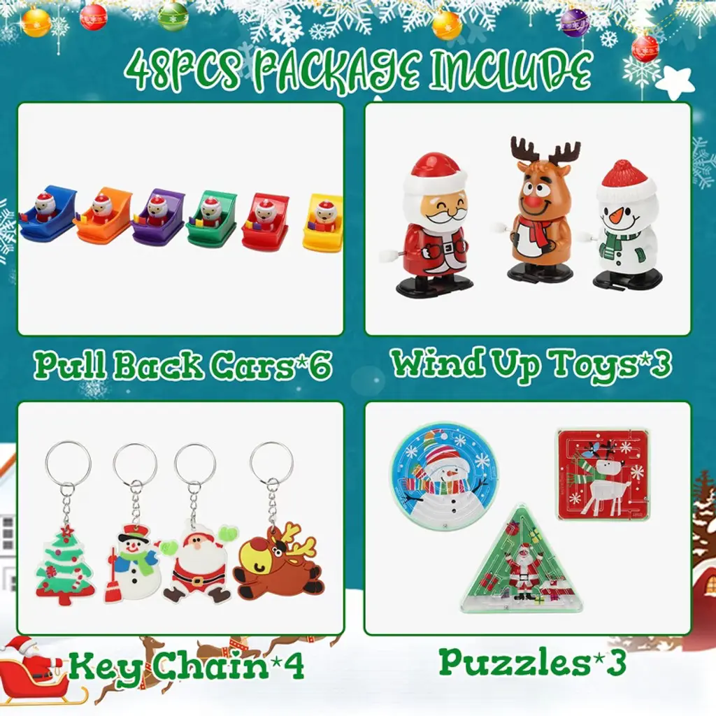 48Pcs Christmas Toys Assortment For Kids Party Favors, Mochi Squishies, Puzzles, Pull Back Cars, Wind up Toys for Advent Calendar, Pinata Fillers, Treasure Box, Christmas Gifts