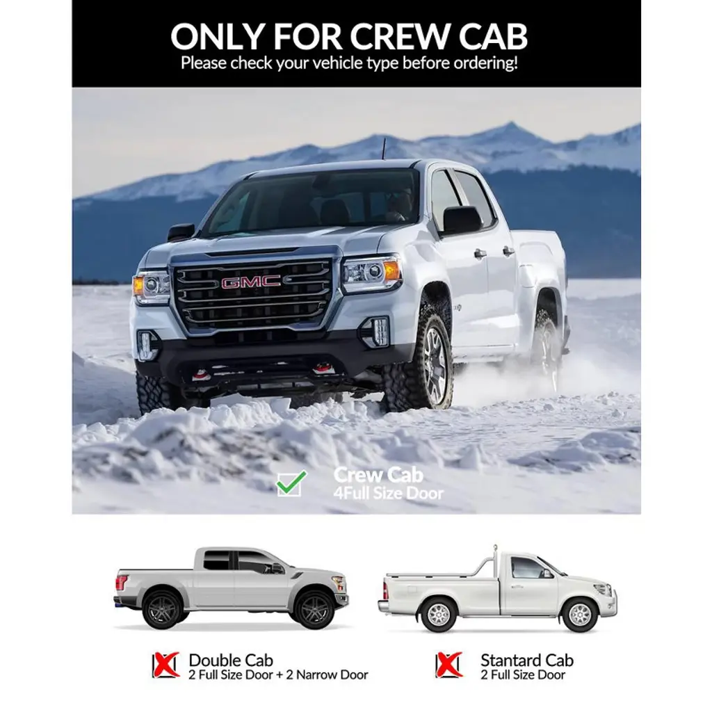 For 15-22 Chevrolet Colorado / GMC Canyon! ABS material, anti-skid aluminum steps, bearing up to 450 pounds per side. Strong weather resistance, convenient installation, no drilling. Exquisite installation guide, carefree installation. Upgrade the driving experience, just choose it!