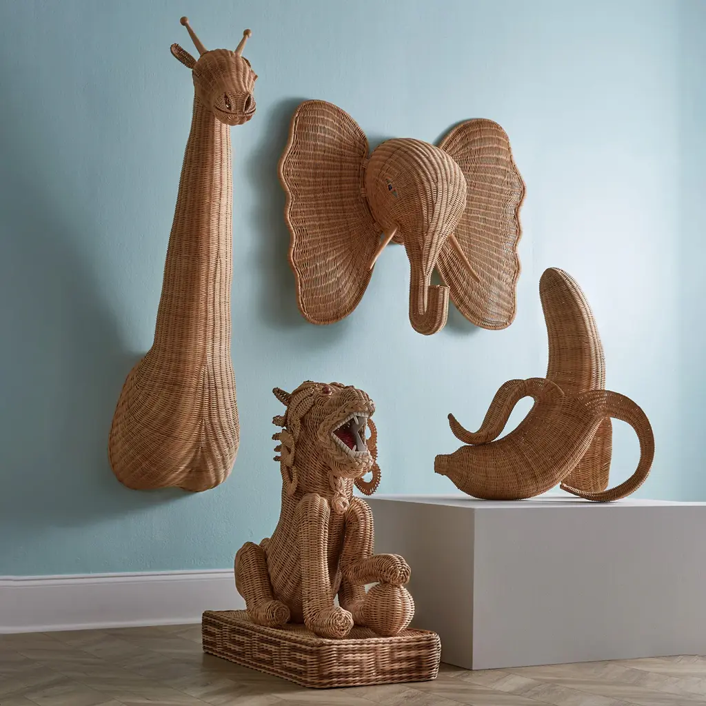 Wild Style. Our slyly suggestive tribute to surrealism with blown up proportions to add just the right amount of extra appeel . Every oversized wicker sculpture is weaved by a single artisan over the course of four days. An additional two days is spent finishing each piece, to include coating it with a clear lacquer to enhance the natural rattan coloring. A breezy, tropical classic.