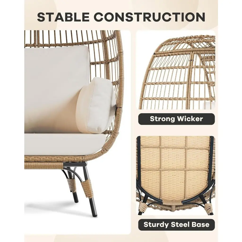 Wicker Egg Chair Outdoor Indoor, Oversized Rattan Patio Lounge Chairs With Cushion For Backyard, Living Room, Steel Frame, Capacity-beige