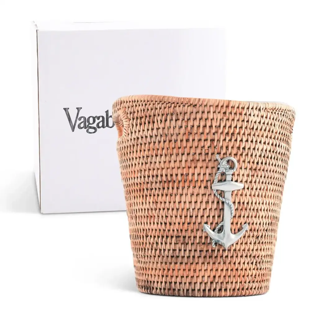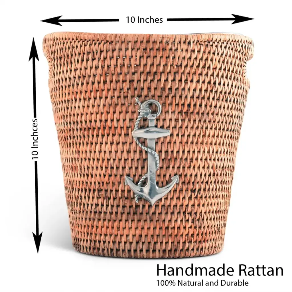 Upgrade your outdoor entertaining with our 'Acquire Non-Slip Rattan Ice Bucket.' Expertly hand-woven with high-quality rattan, this Sea and Shore Collection Wine Bucket offers a durable yet elegant solution for your favorite bottle of wine or champagne. The shining, pewter anchor emblem, a symbol of hope and steadiness, enhances the ice bucket's chic appeal, making it a must-have for nautical weddings or sea-themed parties. The bucket's generous size, 10 Inches Tall x 9.5 Inches Diameter, ensures your favorite drinks stay chilled and easily accessible for your guests. Furthermore, its eco-conscious design, featuring sustainable materials, adds an added touch of charm for your outdoor gatherings. Vagabond House is a family-owned American company specializing in fine pewter tableware, servingware and giftware. Largely inspired by nature, their exclusive products are designed to be unique, functional heirlooms for those who seek to express tradition and style in both family and formal entertaining.