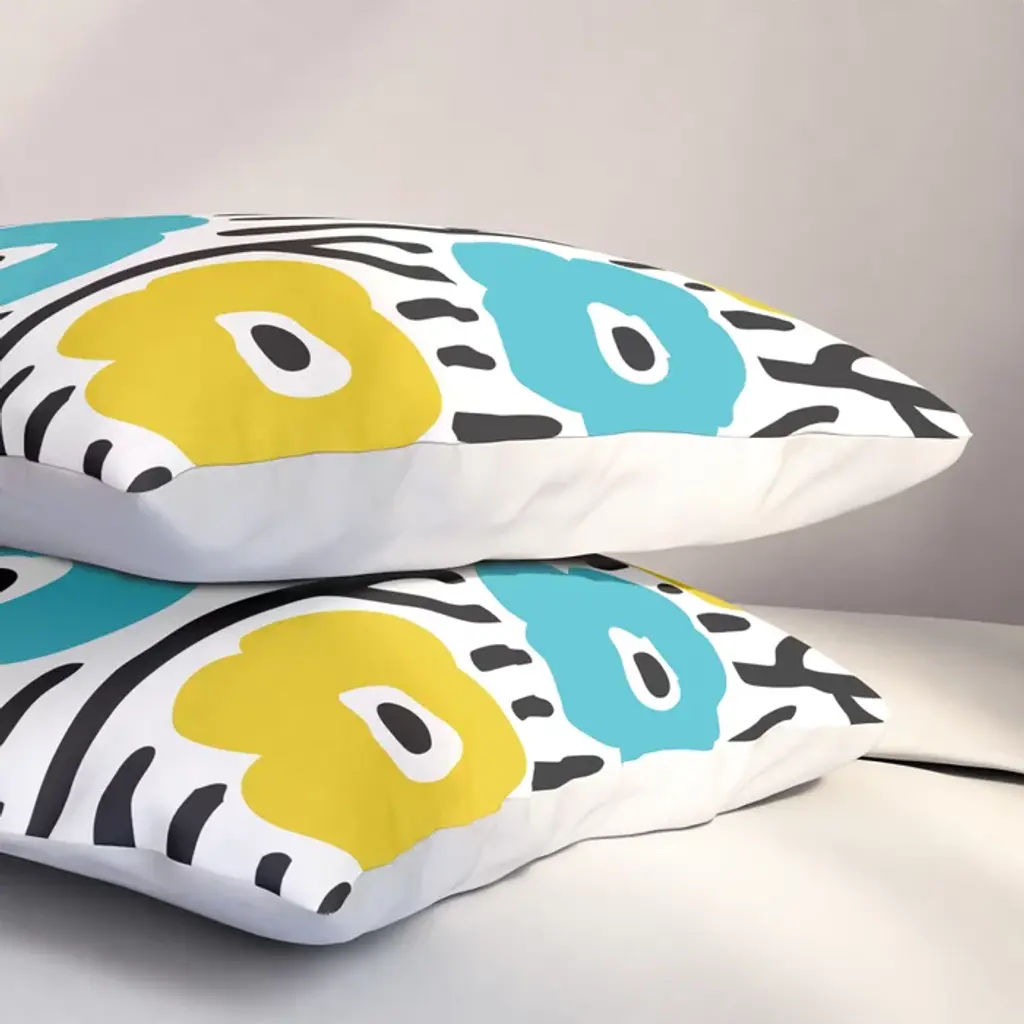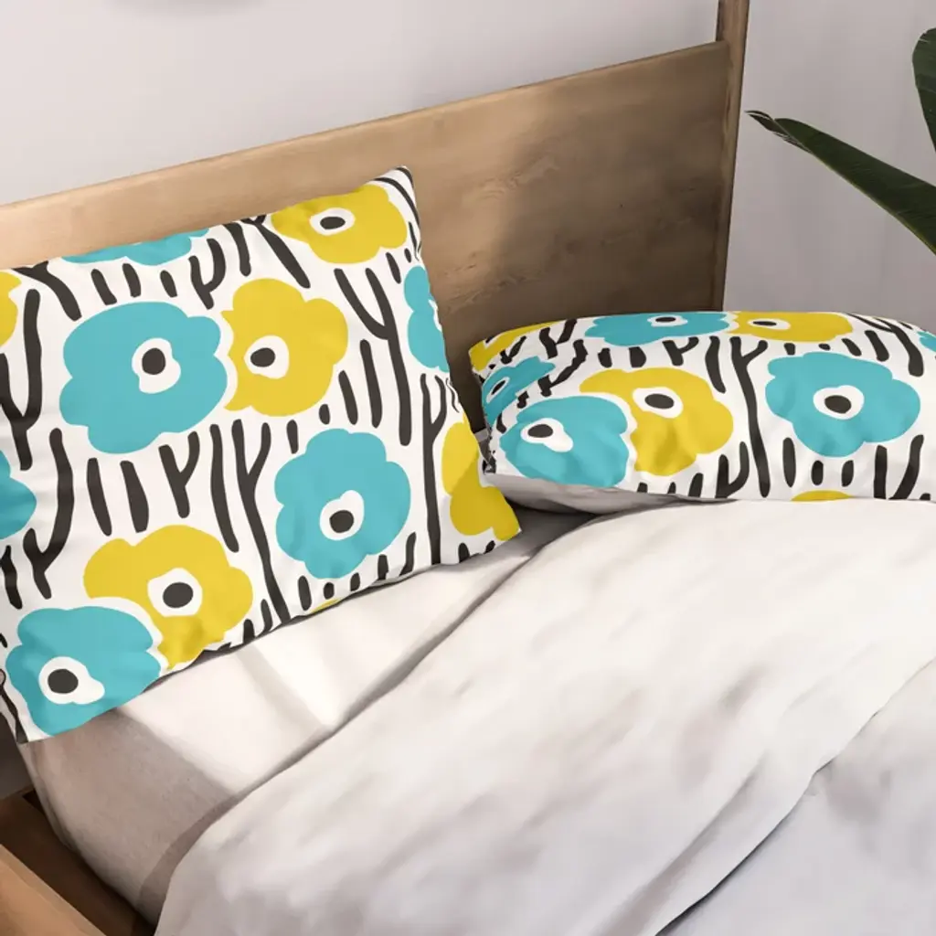 Wild Flowers Pattern Turquoise And Yellow Pillow Sham