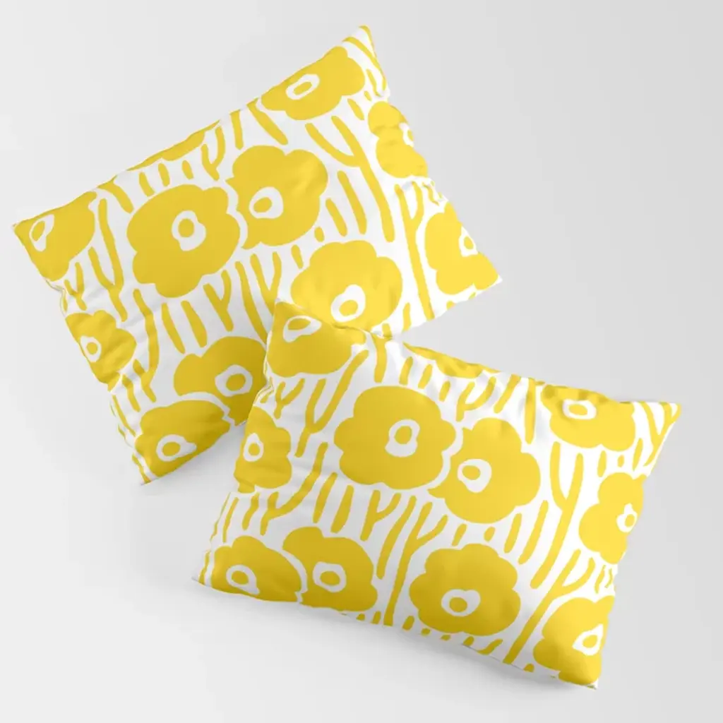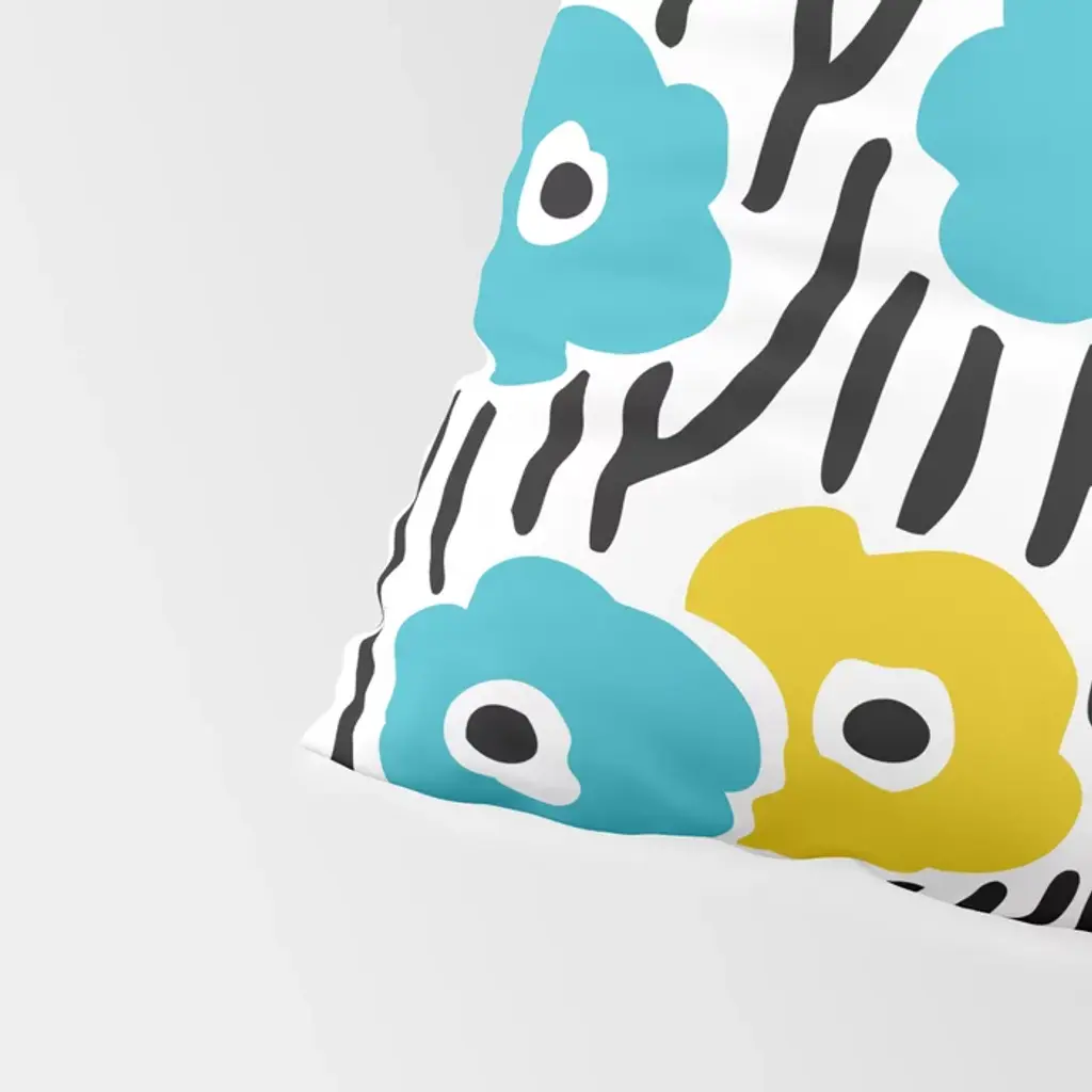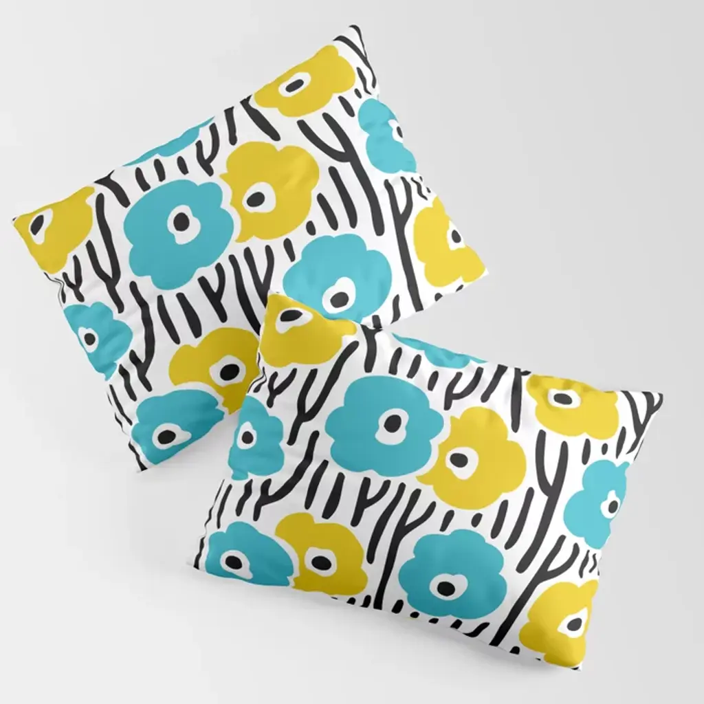 Wild Flowers Pattern Turquoise And Yellow Pillow Sham
