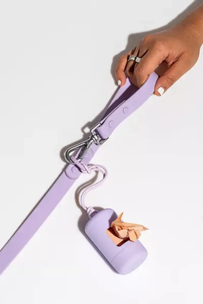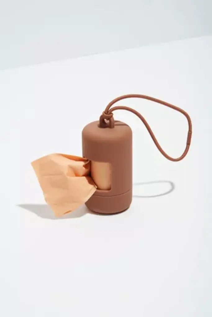 A happy home for your poop bags. Complete with an elastic strap to easily attach onto any leash or tote, a twist top to make reloading a breeze, and a complementary roll of our eco-friendly Poop Bags! Compatiable with all standard dog leashes. **Content + Care** \- Soft touch plastic, elastic band with iron clasp. \- Hand wash with mild soap and warm water. Wipe dry with towel or let air dry. \- Imported **Size + Fit** \- Diameter: 1.75" \- Height: 3.5"