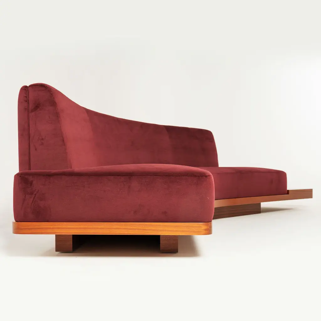 Wild Side Curved Red Wine Sofa With Table By Lorenza Bozzoli