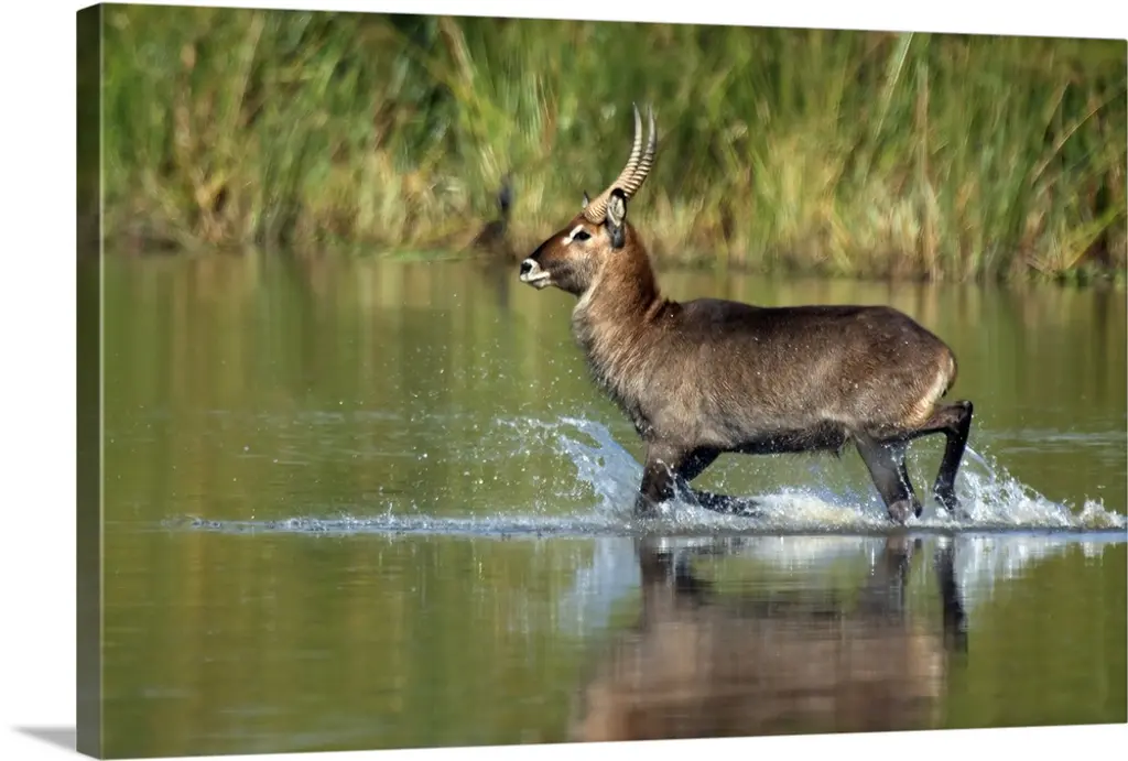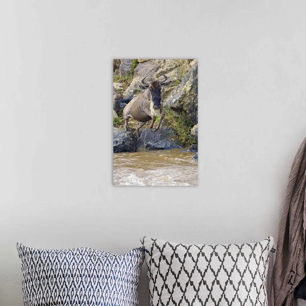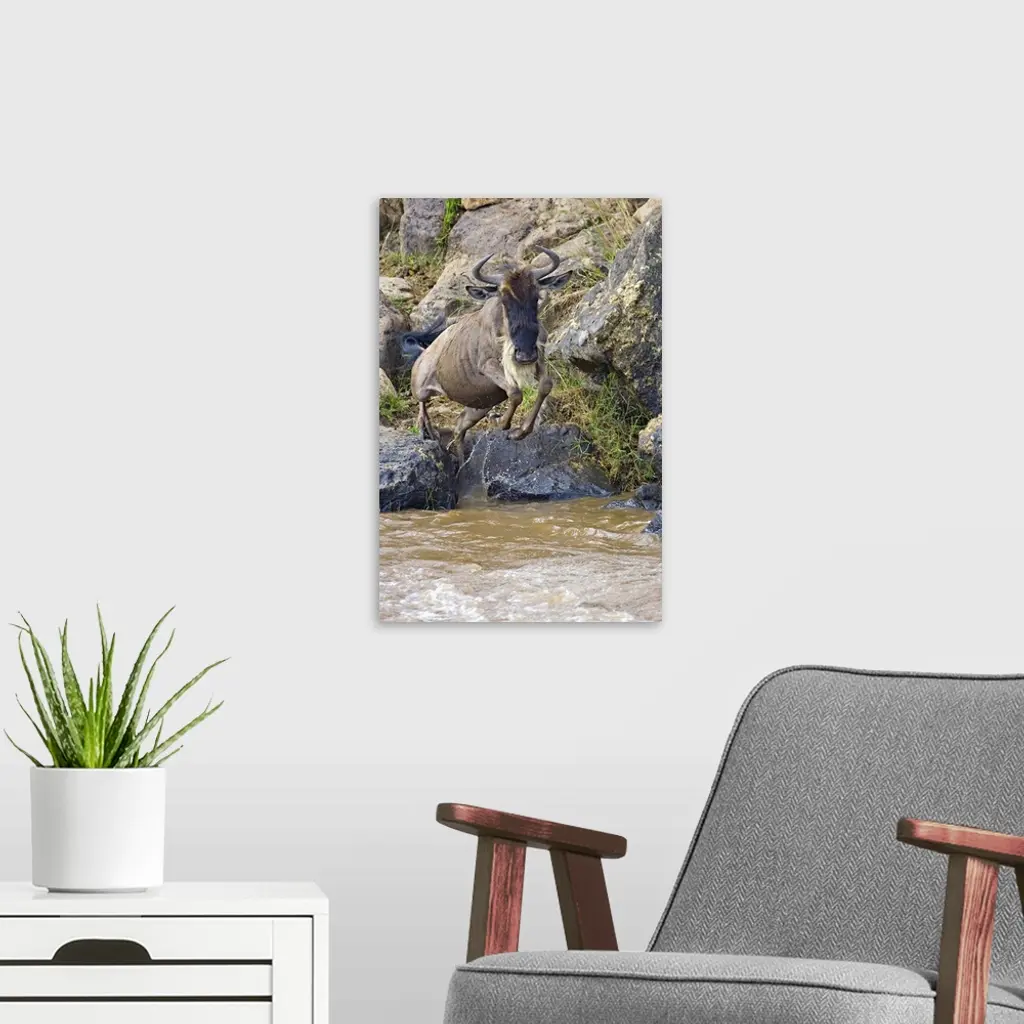 Wildebeest jumping into the river, Mara River, Masai Mara National Reserve, Kenya wall art for home and office decor. Discover canvas art prints, photos, mural, big canvas art and framed wall art in GreatBigCanvas.com's varied collections.