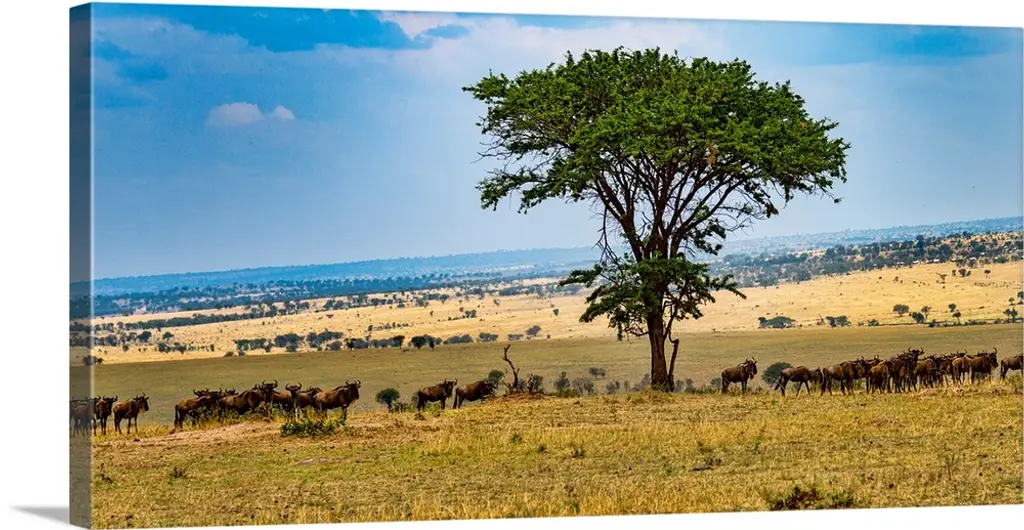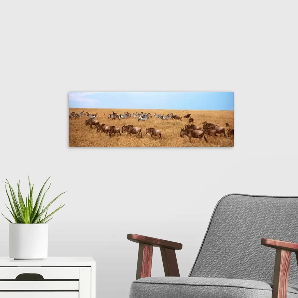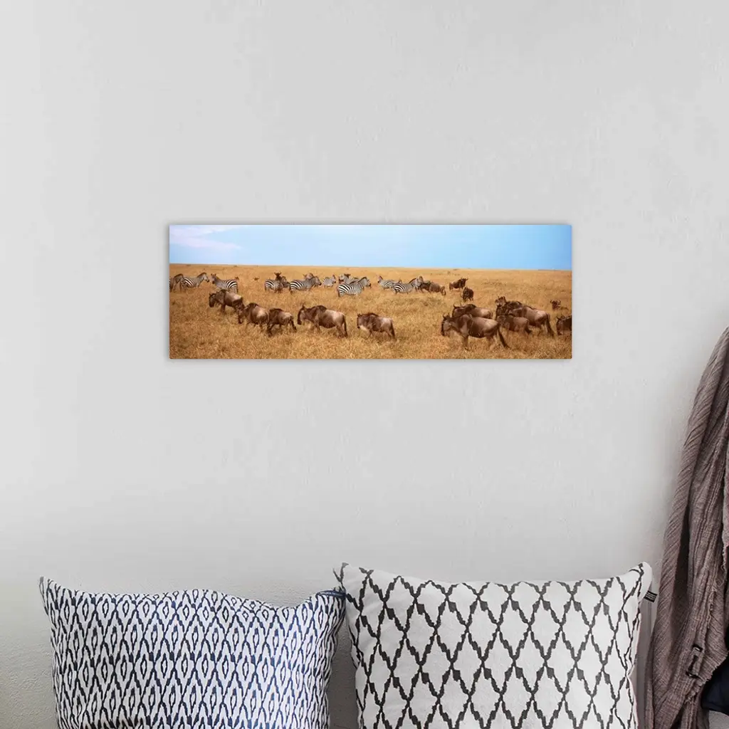 Wildebeests and Zebras Maasai Mara Kenya Africa wall art for home and office decor. Discover canvas art prints, photos, mural, big canvas art and framed wall art in GreatBigCanvas.com's varied collections.